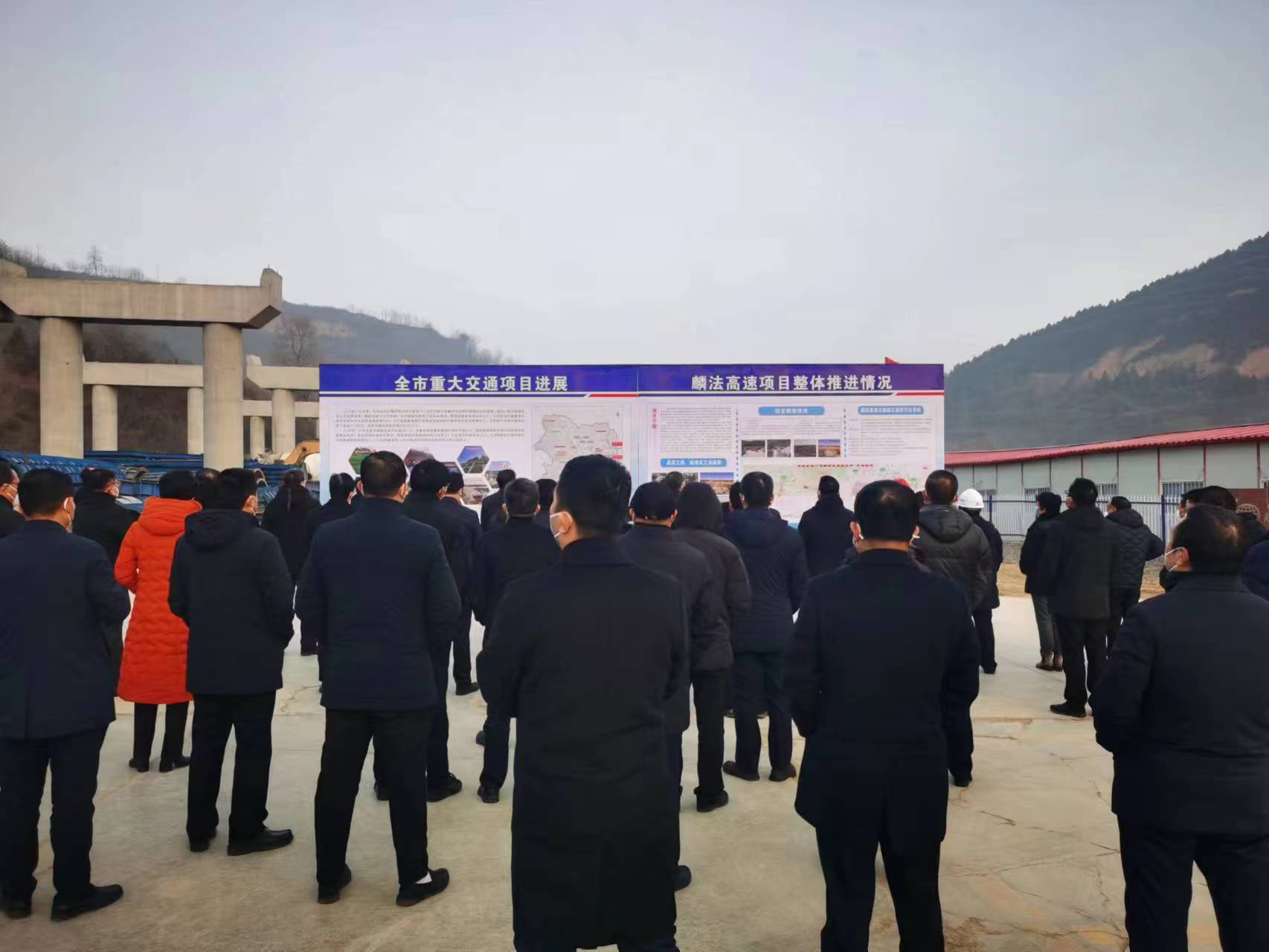 1月5日上午,市委十三屆三次全體(擴(kuò)大)會議與會人員來到麟游至法門寺高速公路項目現(xiàn)場進(jìn)行觀摩。