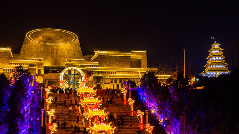 龍年春節期間,入夜,以國寶“何尊”為原型的《何以為尊》燈組,光彩奪目的“鳳鳴九天”“詩經風雅”“封神榜”燈組,閃亮于陜西寶雞陳倉老街。現場舉辦的非遺展演和周禮燈謎等活動,讓游客在游玩觀賞中,感受周文化的魅力。