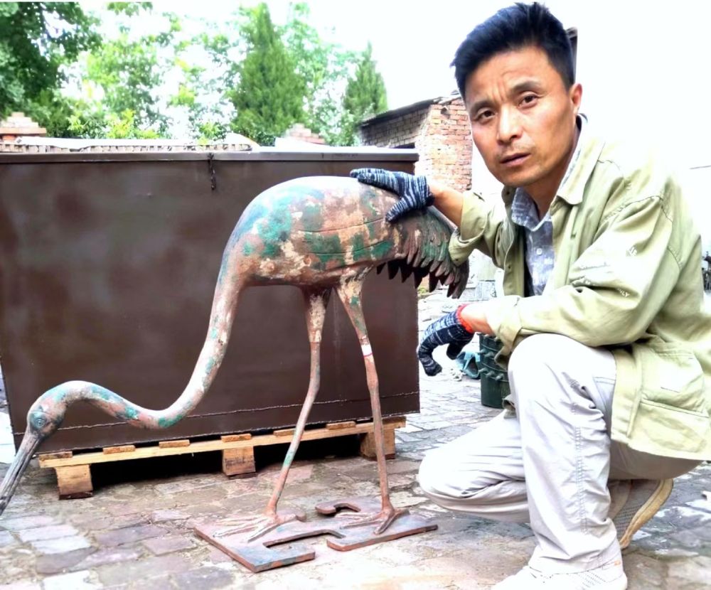為了研習工藝,于安君潛心研究各種歷史文獻和青銅器制作技藝資料。他行走全國各地,遍訪老師專家、參觀博物館。多年的琢磨研習,讓于安君的復制技藝大為精進,大到幾米高的銅鼎,小到幾厘米的鳥獸器物,他都能復制得形神兼備。