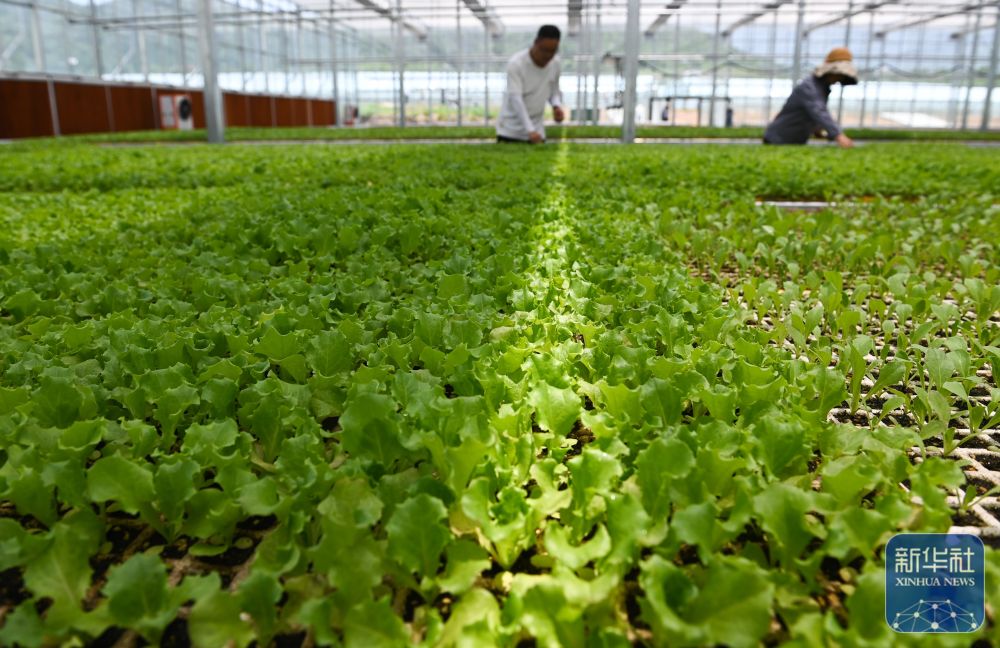↑ 6月24日,在陜西省太白縣咀頭鎮(zhèn)一處蔬菜育苗大棚里,農(nóng)戶在查看蔬菜苗長勢。新華社記者 蔡湘鑫 攝