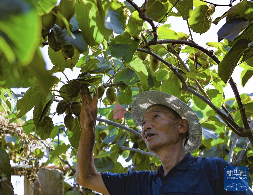 ↑ 6月24日,在陜西省眉縣橫渠鎮(zhèn)一處獼猴桃種植基地,農(nóng)戶在查看獼猴桃長勢。新華社記者 蔡湘鑫 攝