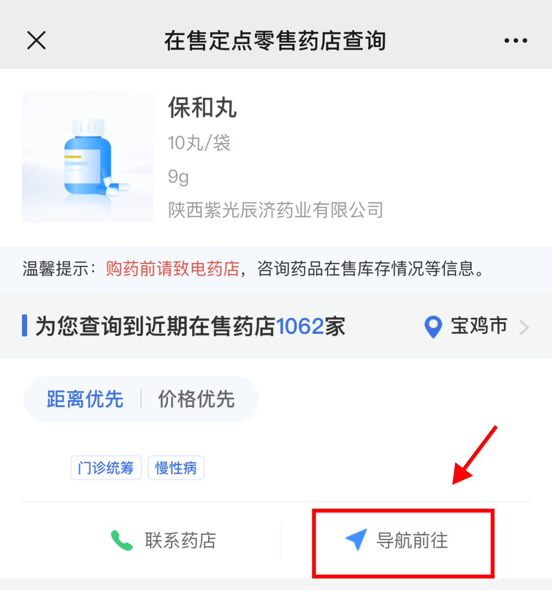 藥品比價系統(tǒng)的推出,還為群眾帶來了其他便利,比如輸入藥品名稱不僅可以查詢價格,還可以查詢到生產廠家、規(guī)格,并可按距離或價格展示相關藥店,區(qū)域比價更精準。此外,參保群眾還可以通過該功能比較省內其他周邊地市相同藥品的價格,電話咨詢了解藥店藥品詳細情況,并通過“點擊導航”服務直達藥店。