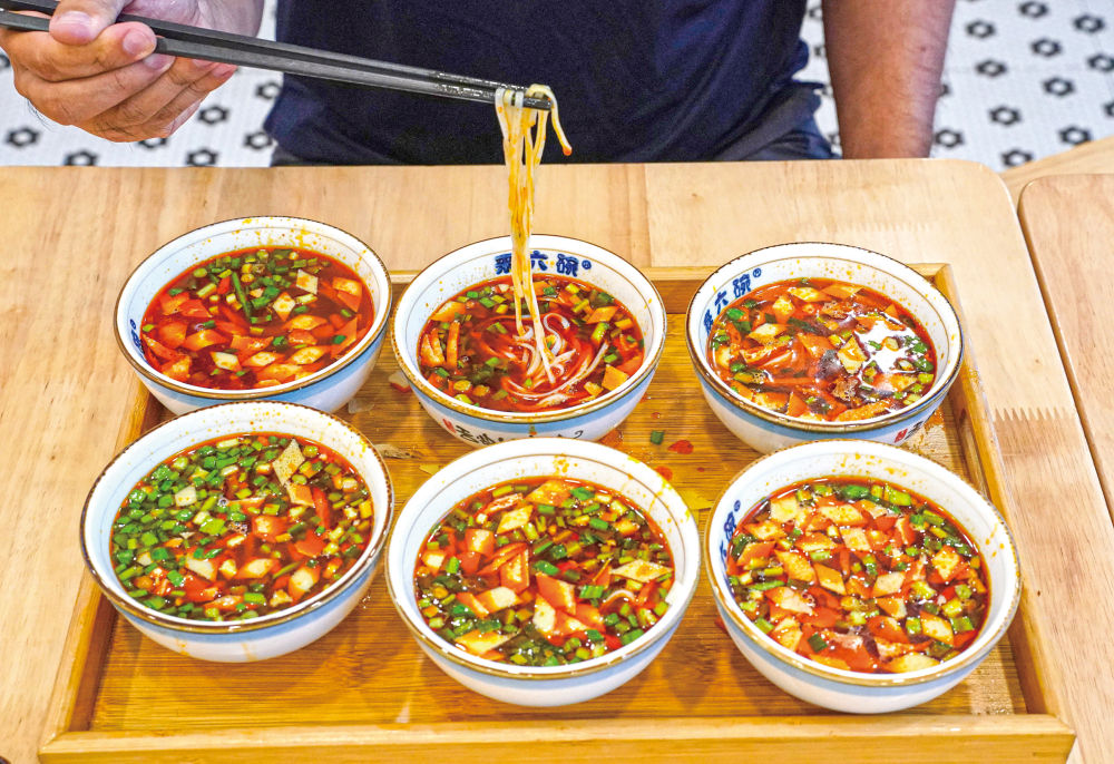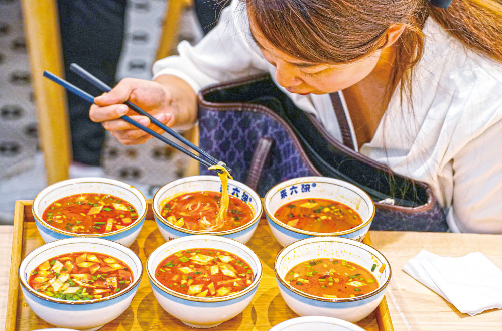 “臊子面也被稱作‘一口香’,顧名思義就是每碗面只有一口的量,這種吃法可以極大保留湯的鮮美,品嘗面條的筋道。因此,岐山人把吃臊子面也叫‘吸’臊子面。”楊慧敏說,“一個人一次單獨吃上幾十碗岐山臊子面也不稀奇,現在飯店里的一份臊子面多是六小碗。”
