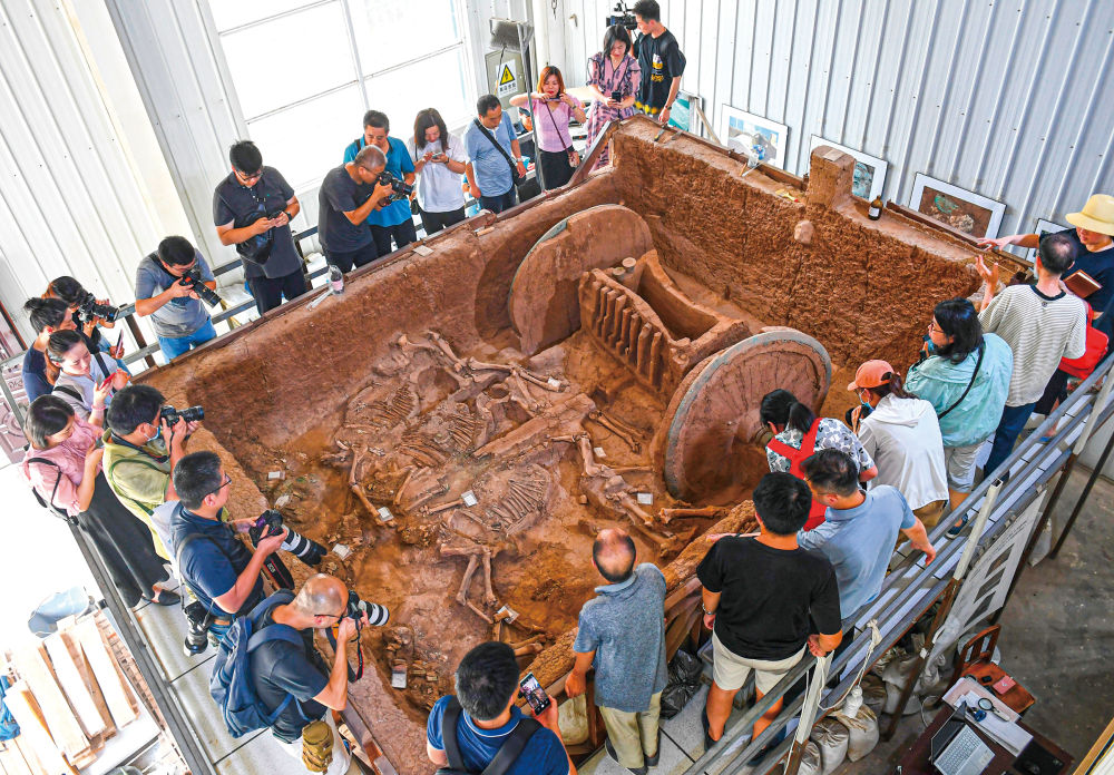 這是在陜西省考古研究院涇渭基地拍攝的西周晚期青銅輪牙馬車。這套青銅輪牙馬車2014年出土于陜西省寶雞市岐山縣周原遺址。新華社記者 李一博 攝
