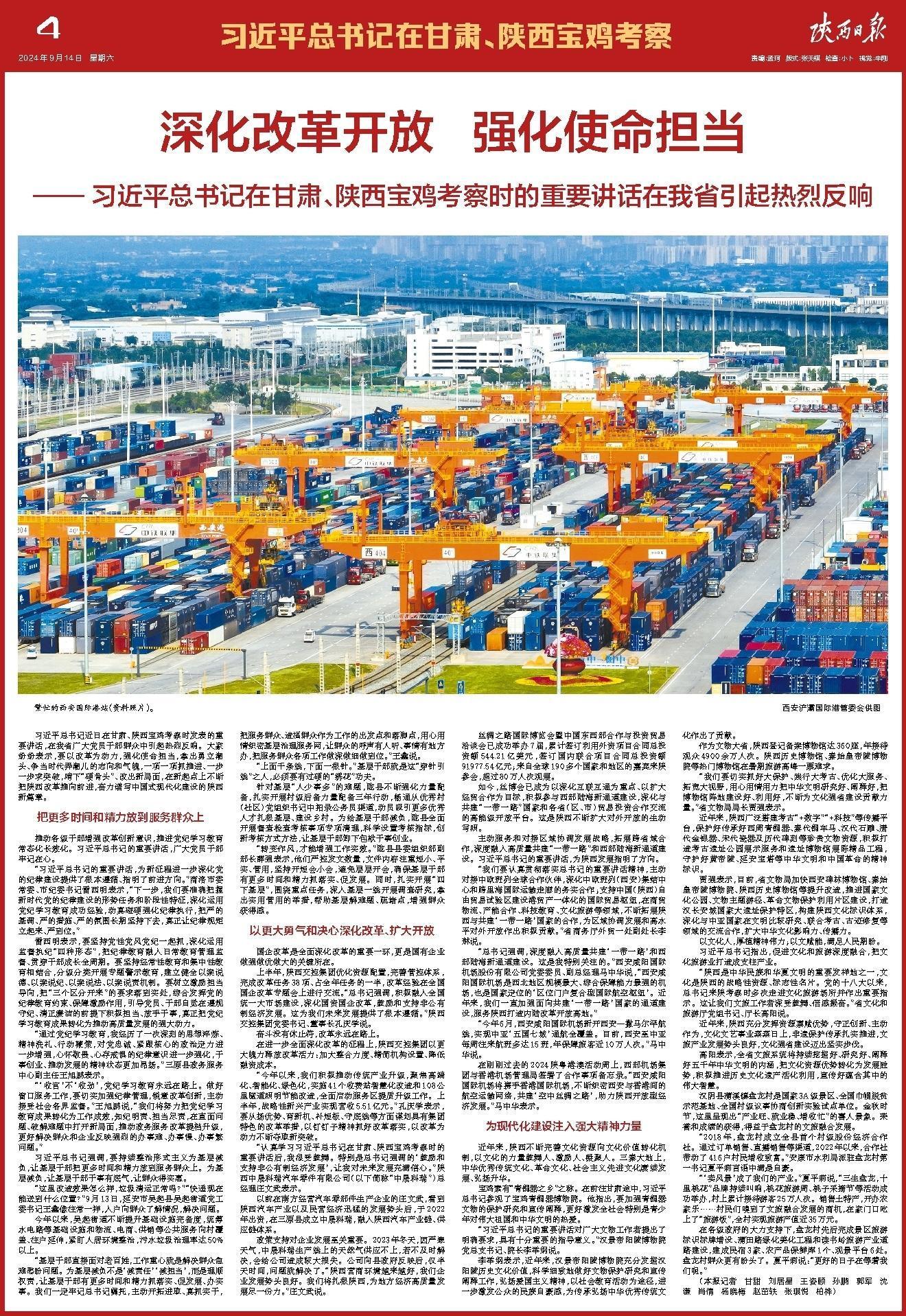 習近平總書記近日在甘肅、陜西寶雞考察時發表的重要講話,在我省廣大黨員干部群眾中引起熱烈反響。大家紛紛表示,要以改革為動力,強化使命擔當,拿出勇立潮頭、爭當時代弄潮兒的志向和氣魄,一項一項抓推進、一步一步求突破,啃下“硬骨頭”、改出新局面,在新起點上不斷把陜西改革推向前進,奮力譜寫中國式現代化建設的陜西新篇章。