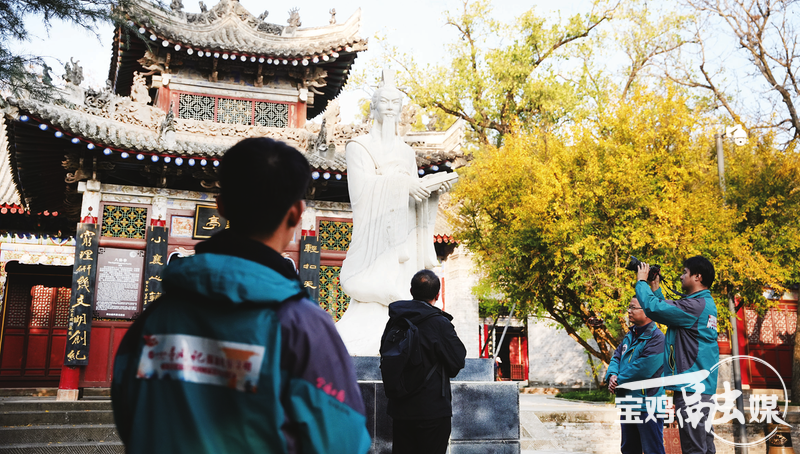 遷徙到岐山腳下的周原后,周人營建宮室、開墾田地,在發展壯大后,不僅建立了全新的政權,更創造了燦爛的文化。周文化作為中華傳統文化的根源,千百年來備受推崇,而始建于唐武德元年(618年)的岐山周公廟,就是后世紀念周先賢、傳承周文化的載體。 采訪團在岐山周公廟采訪 立冬前夕,我們沿著周人遷徙的路線一路尋覓,終于來到聞名遐邇的周公廟。 周公廟所在的鳳鳴崗形似臥蟾,三面環山,向南的沃野一望無際。站在山巔向四周眺望,便會對這片3000多年前的周人生息之地發出由衷的感慨。 或許,在那時,周先祖帶領先民們初來此地,站在這里俯視、思索。但毋庸置疑的是,正是因為周人在岐下周原的辛勤耕耘,才為綿延八百年的周王朝孕育出了影響后世數千年且無比珍貴的思想圖騰和精神家園。 周公廟所在地還有一個雅致的稱呼——卷阿。這一詞最早出現在《詩經》詩句“有卷者阿,飄風自南”,正是感念于周先祖的創世偉業,1400多年前,唐高祖李淵下詔在國子監立周公孔子廟,作為周公出生地的岐山,同時在鳳凰山南麓的卷阿修建周公祠。時至今日,周公廟依然廣受關注、游客不斷。 來到周公廟門前,幾株千年古樹讓人肅然起敬,其頑強的生命力仿佛昭示著這里蘊含的周人奮斗精神依然熠熠生輝。跨進大門的一剎那,兩列高大的蒼松翠柏猶如守護千年的衛兵,一股濃郁的歲月滄桑感撲面而來。走在中間的步道,看到周圍恢宏的古建筑和清新雅致的環境,猶如穿越到了3000多年前周公制禮作樂的時代。穿過樂樓,來到中心廣場,就能看到標志性的周公塑像,其雙手握持誥券,平視遠方的目光充滿智慧。依次走進獻殿、召公殿、太公殿,看著展板介紹周公、召公、太公的生平故事,再聽聽講解員的解說,好似見證了那一個個重大的歷史時刻,還原出那一個個德行天下、志慮忠純、廉政愛民的豐滿形象。周公握發吐哺、六廉施政、還政成王的德行讓人感動;召公甘棠遺愛、循行南國、勸諫成王,被后世奉為廉政典范;太公“六守”“八征”等人才理論見高識遠,通古達今……還有那一副副楹聯和一塊塊碑刻,無不表達著歷代文人墨客對周先賢的無限仰慕和高度贊譽。 沿周公廟后的山坡拾級而上,便能看到一個全身金色、振翅欲飛的鳳凰塑像,就是鳳鳴岐山傳說的發生地——鳳鳴崗。《國語·周語》記載:“周之興也,鸑鷟鳴于岐山。”塑像整體高10多米,在陽光的照射之下,反射出道道光芒,亮麗而又耀眼。 岐山縣周公廟管理處副主任劉劍峰一語中的,周文化呈現出忠誠愛國、崇德尚德、勤政愛民、廉潔奉公、任人唯賢等特點,其核心思想影響了中華文明三千年,堪稱“儒家之源”和“諸子之師”。