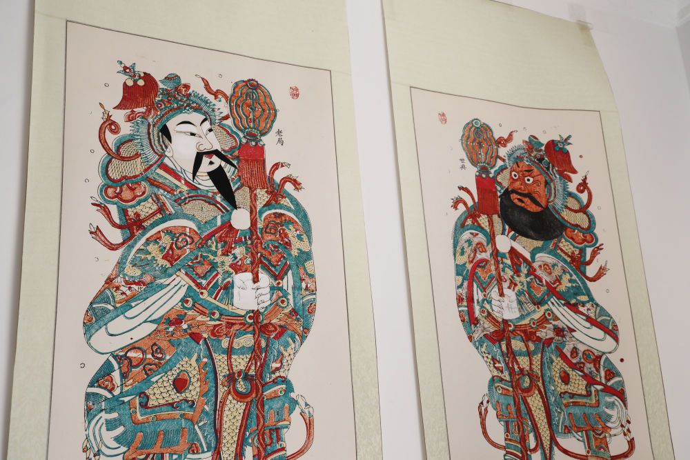 ??1月18日,邰立平工作室內展示的《方相》《方弼》門神年畫作品。新華社記者 林勝概 攝