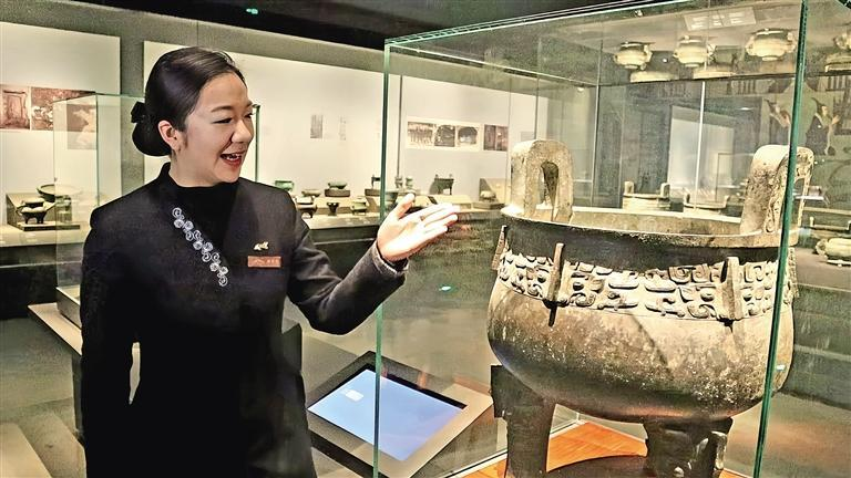 陜西歷史博物館講解員謝雙雙在介紹旟鼎。