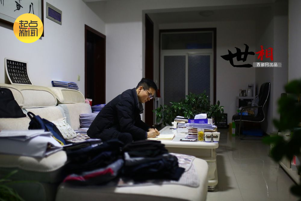 晚上七點,夜幕降臨,下班后的辦公樓里一片寂靜。鄭飛安排完次日的工作后,準備回家。“我這會兒感覺一點都不累,讓我再開兩個小時會我也沒問題!”奔波了一天的鄭飛仍然精神十足。他的住處與辦公樓一墻之隔,一進門,映入眼簾的是沙發和茶幾上堆滿的文件。不大的客廳,像是鄭飛的第二個辦公室?!皼]收拾,有點亂。”鄭飛略顯局促地說。而偶爾從瑣碎的工作抽離出來的鄭飛,每周都會在這里伏案閱讀和寫作,于他而言,這是平和心境的最佳自處方式。