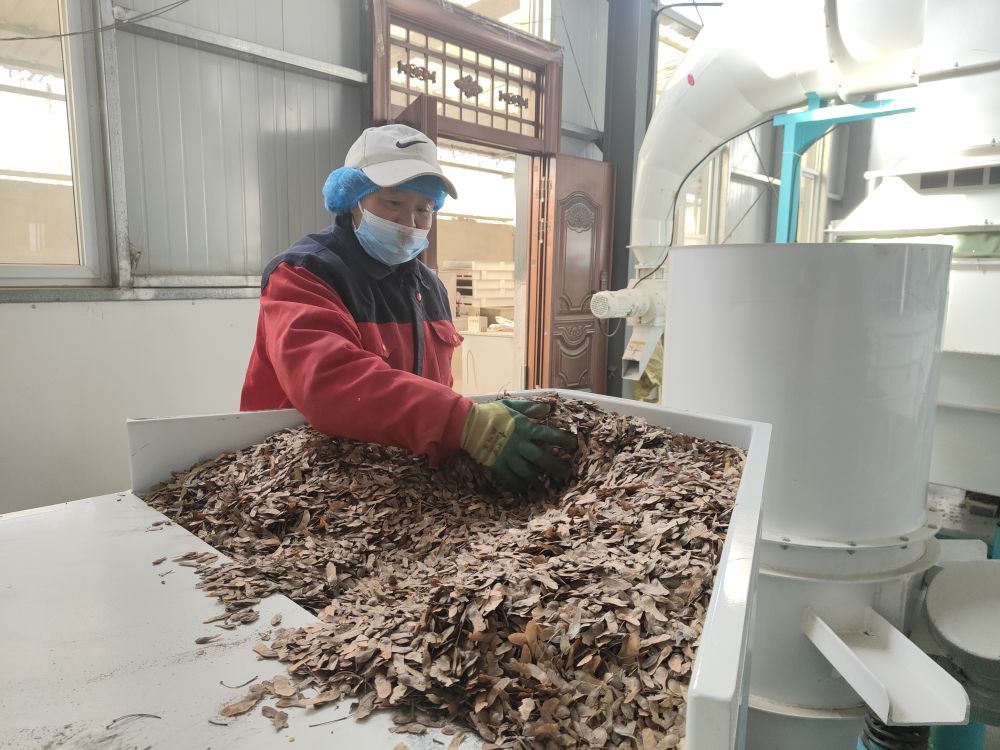 陜西紅寶楓生物科技有限公司員工在進(jìn)行元寶楓翅果(種子)脫粒前的準(zhǔn)備工作(2025年2月25日攝)。新華社記者 姚友明 攝