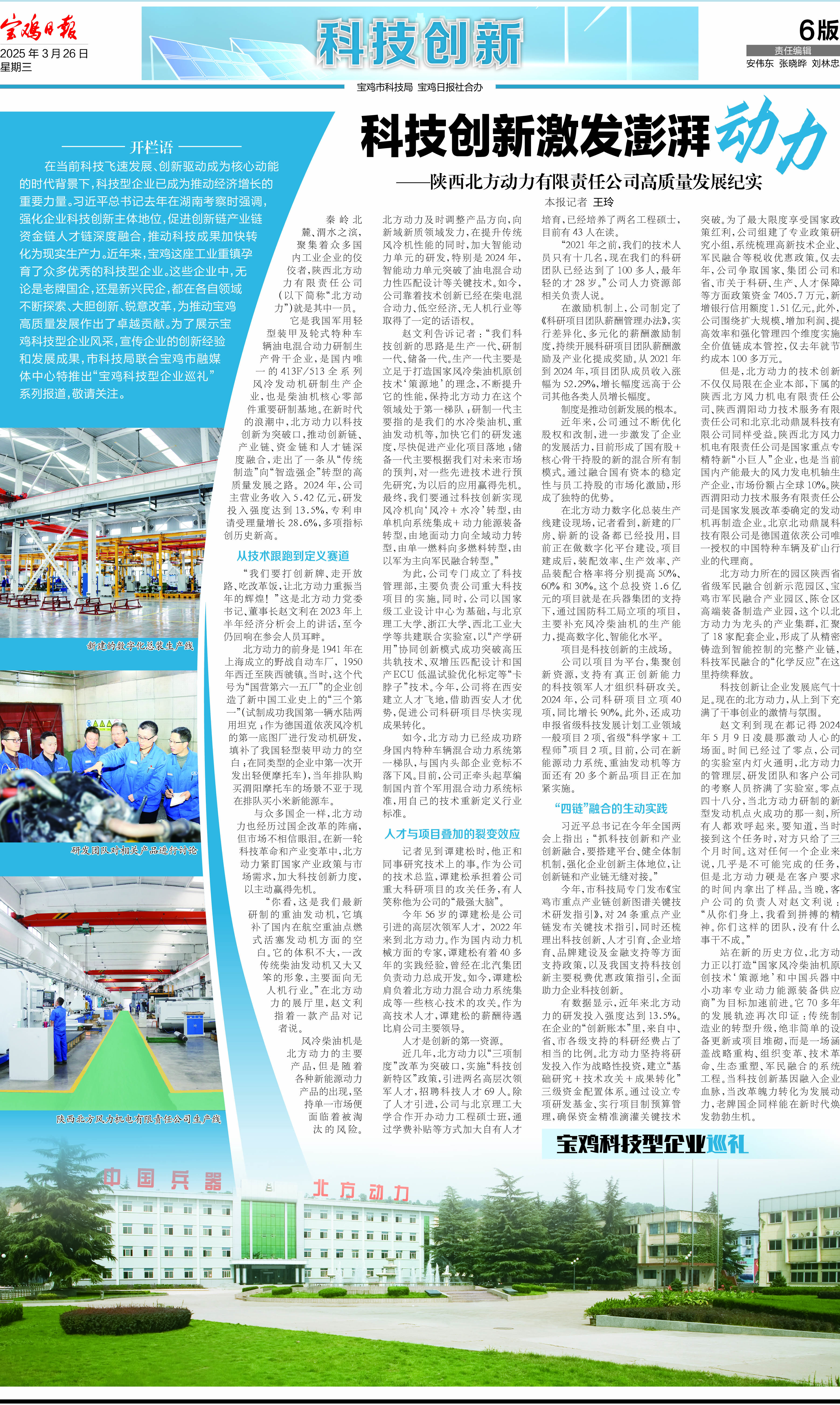 它是我國軍用輕型裝甲及輪式特種車輛油電混合動力研制生產(chǎn)骨干企業(yè),是國內(nèi)唯一的413F/513全系列風(fēng)冷發(fā)動機(jī)研制生產(chǎn)企業(yè),也是柴油機(jī)核心零部件重要研制基地。在新時代的浪潮中,北方動力以科技創(chuàng)新為突破口,推動創(chuàng)新鏈、產(chǎn)業(yè)鏈、資金鏈和人才鏈深度融合,走出了一條從“傳統(tǒng)制造”向“智造強(qiáng)企”轉(zhuǎn)型的高質(zhì)量發(fā)展之路。2024年,公司研發(fā)投入強(qiáng)度達(dá)到13.5%,專利申請受理量增長28.6%,多項指標(biāo)創(chuàng)歷史新高。