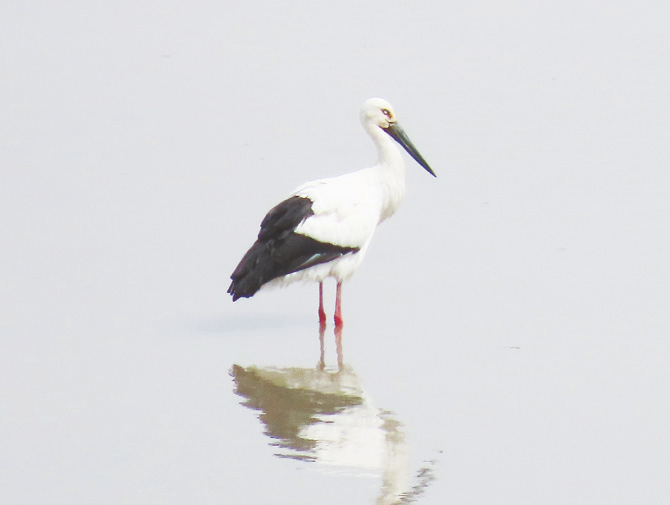 近日,陜西千湖濕地省級自然保護區管理處工作人員在巡查時,發現一只黑翅白體、赤腳長喙的大型涉禽覓食于千湖之上。后經專家鑒定,該涉禽為全球瀕危物種東方白鸛。