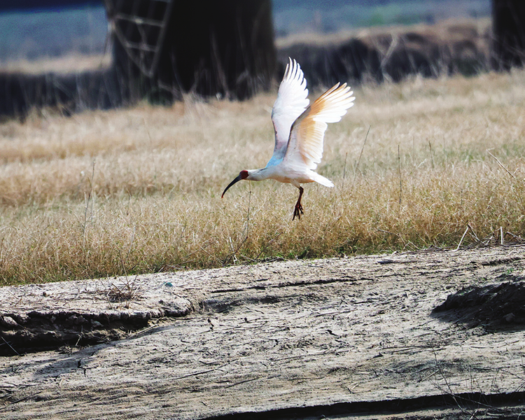 據愛鳥人士蘭圣杰介紹,他在金渭湖“金陵古渡”附近看到的這只朱鹮,體長約75厘米,嘴部呈黑色且末端泛紅,裸露的紅色頭部在陽光下格外醒目,翅下及尾羽基部泛著柔和的粉紅色光澤,完全符合成年朱鹮的典型生物學特征。這只朱鹮并無腳環標記,屬于自然遷徙的野生個體,只見這只朱鹮時而在淺水區踱步覓食,時而展翅滑翔,動作輕盈舒展。