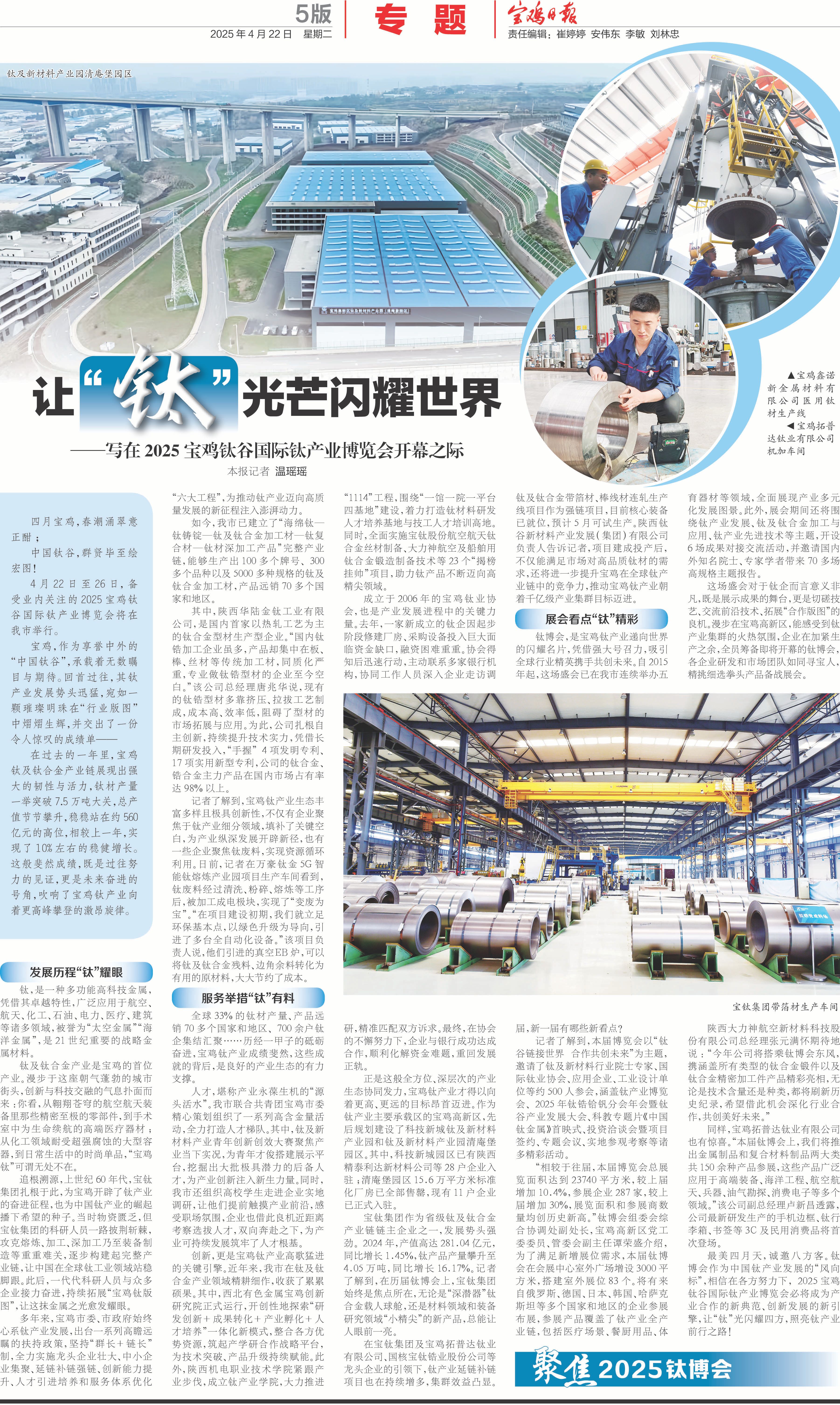 4月22日至26日,備受業內關注的2025寶雞鈦谷國際鈦產業博覽會將在我市舉行。