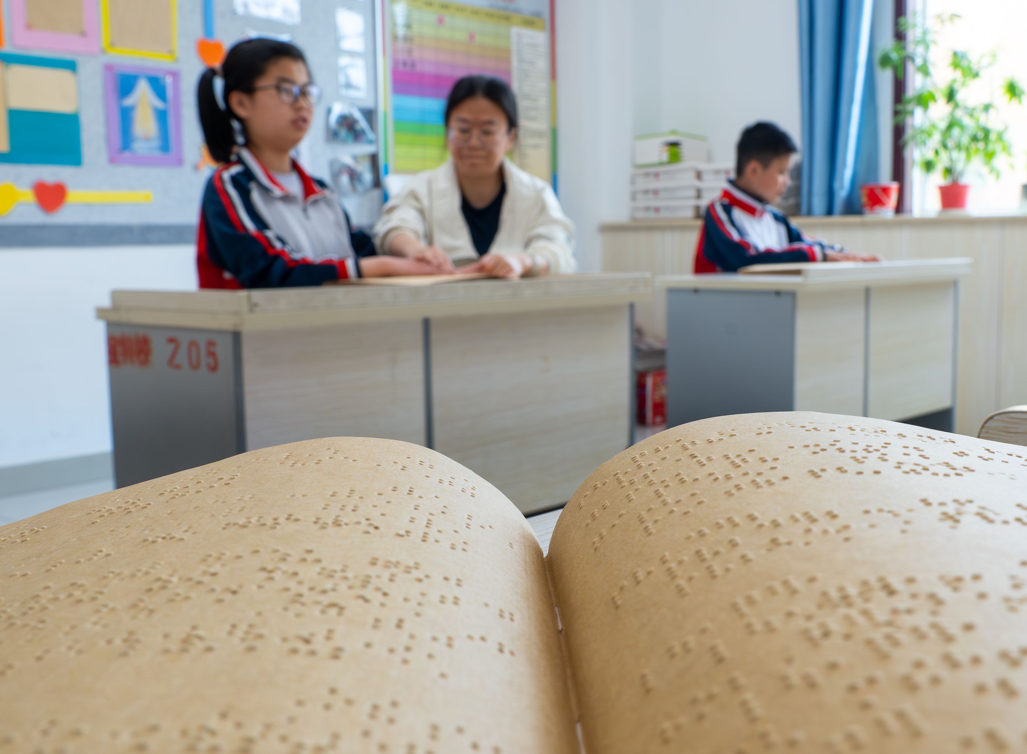 此外,我市各中小學也把校園閱讀環境的創設作為提升學生閱讀興趣的抓手。校園里的教學樓大廳、讀書長廊、教室圖書角甚至樓層拐角都擺滿了圖書,為學生們提供了更加專業、舒適的閱讀環境。在寶雞市特殊教育學校,老師們則手把手地教授孩子盲文閱讀技巧,為孩子們打開了解世界的窗口。