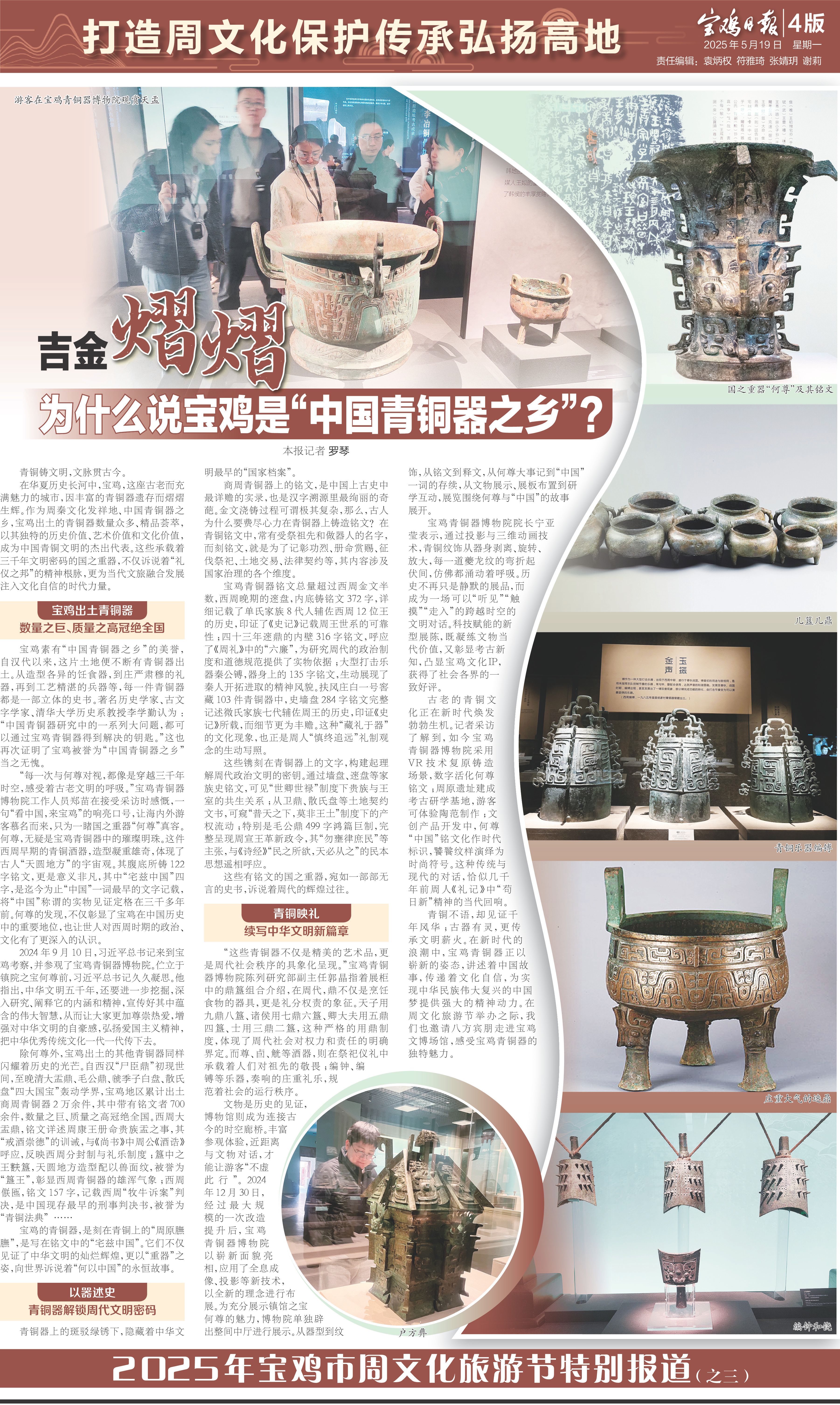 寶雞的青銅器,是刻在青銅上的“周原膴膴”,是寫在銘文中的“宅茲中國”。它們不僅見證了中華文明的燦爛輝煌,更以“重器”之姿,向世界訴說著“何以中國”的永恒故事。