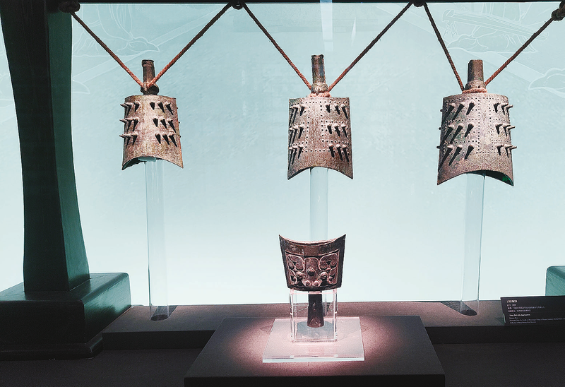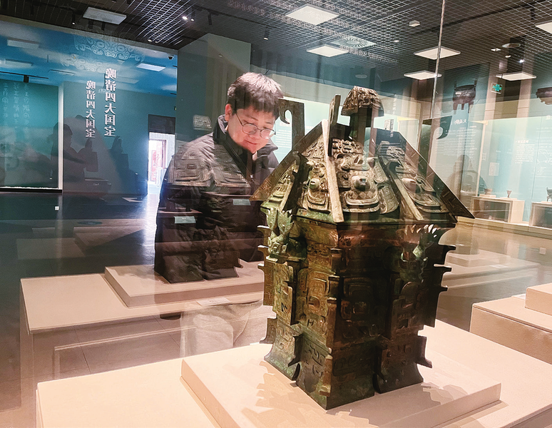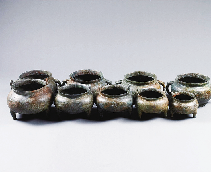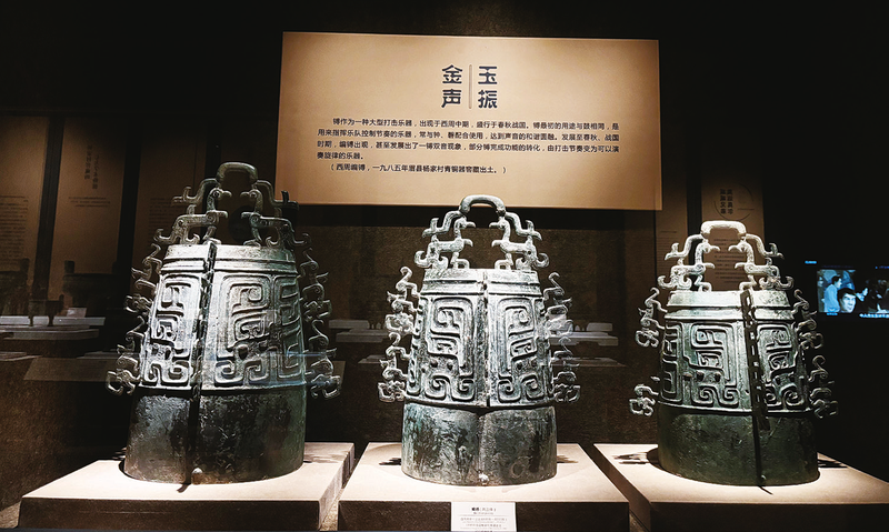 “這些青銅器不僅是精美的藝術品,更是周代社會秩序的具象化呈現?!睂氹u青銅器博物院陳列研究部副主任郭晶指著展柜中的鼎簋組合介紹,在周代,鼎不僅是烹飪食物的器具,更是禮分權責的象征。天子用九鼎八簋、諸侯用七鼎六簋、卿大夫用五鼎四簋、士用三鼎二簋,這種嚴格的用鼎制度,體現了周代社會對權力和責任的明確界定。而尊、卣、觥等酒器,則在祭祀儀禮中承載著人們對祖先的敬畏;編鐘、編镈等樂器,奏響的莊重禮樂,規范著社會的運行秩序。