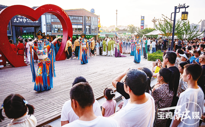 此外,“‘音’你而來·拾光寶雞”本地音樂團體演出將傳統樂器與現代音樂巧妙融合,奏響中國風旋律;《印象·大周》通過創意展銷、典故演繹、周樂展演等活動,重現周代市井生活;“禮樂千年”周禮文化傳承展示通過“周服秀”、開筆禮等活動,讓傳統文化浸潤人心;大學生周文化創意展演、周文化COS動漫節等活動,則為周文化注入青春活力。全市262個點位同步開展的戶外公益電影放映活動,讓周文化的光影魅力走進千家萬戶。這些精彩紛呈的活動,吸引了八方游客紛至沓來。據統計,旅游節期間,中國周原景區、周公廟景區等景點人氣爆棚,游客接待量與旅游綜合收入屢創新高,有力帶動了餐飲、住宿等相關產業發展,為寶雞文旅產業注入澎湃動力。