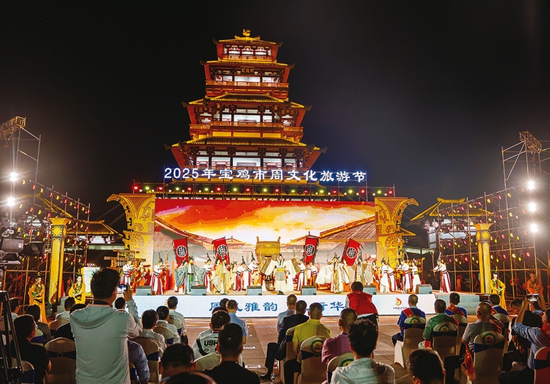 渭水湯湯,星夜如幕。5月19日晚,600架無人機(jī)在市區(qū)石鼓閣上空騰躍而起,以蒼穹為畫布,以代碼為筆墨,勾勒出振翅欲飛的五彩鳳凰、執(zhí)禮相拜的周人先祖以及“中國”一詞的最早輪廓。光影流轉(zhuǎn)間,三千多年前的禮樂文明與數(shù)字科技完成了一場跨越時空的“對話”。這場震撼人心的無人機(jī)表演,不僅拉開了2025年寶雞市周文化旅游節(jié)的序幕,更向世界宣告:這座擁有厚重歷史文化的城市,正以文化為魂,在文旅融合的發(fā)展浪潮中開辟出一條獨具特色的“寶雞路徑”。