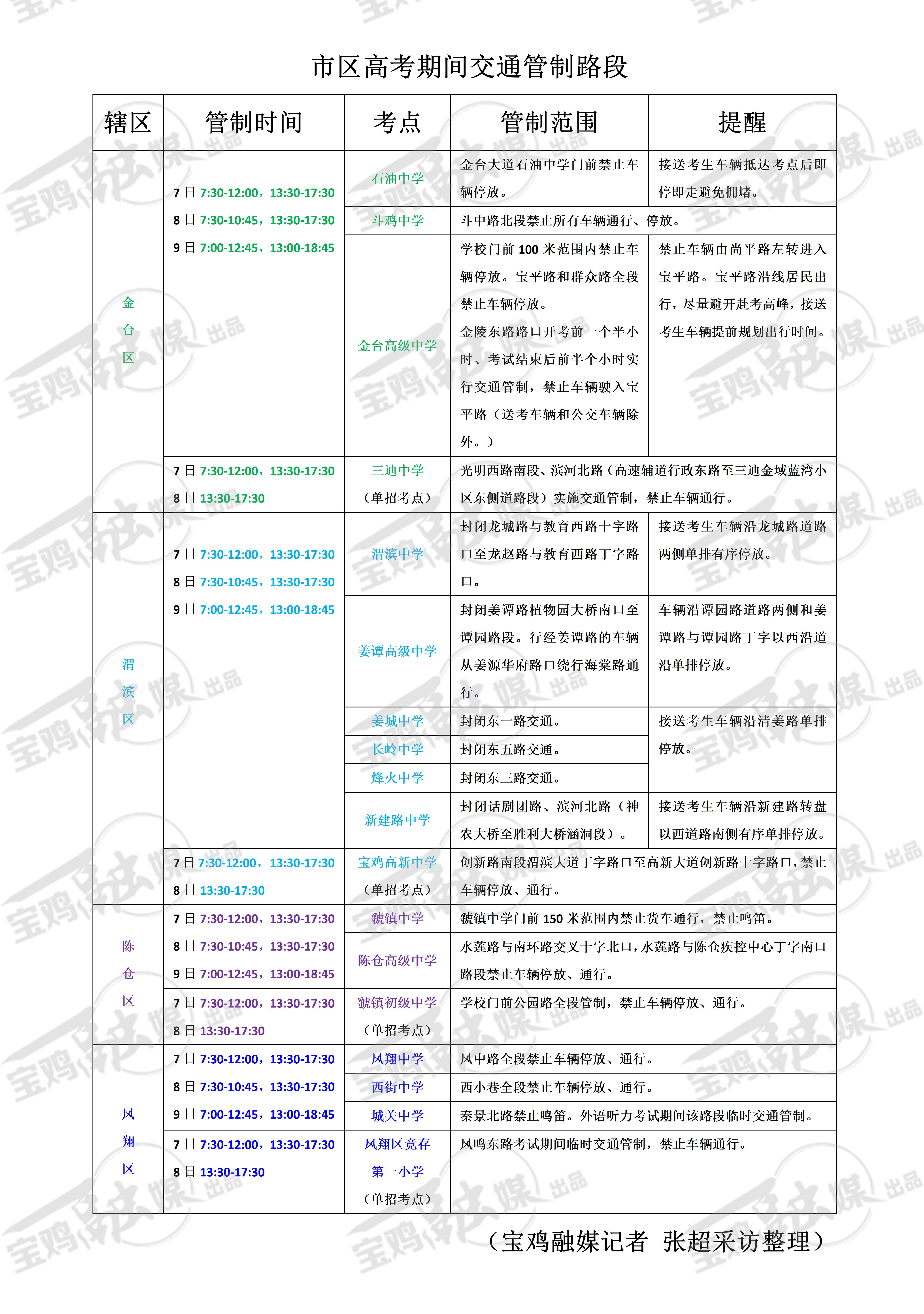2025年高考將在6月7日——9日舉行,寶雞市融媒體中心記者從寶雞交警部門獲悉,今年市區18個考點附近路段將實行交通管制,過往車輛請注意繞行。