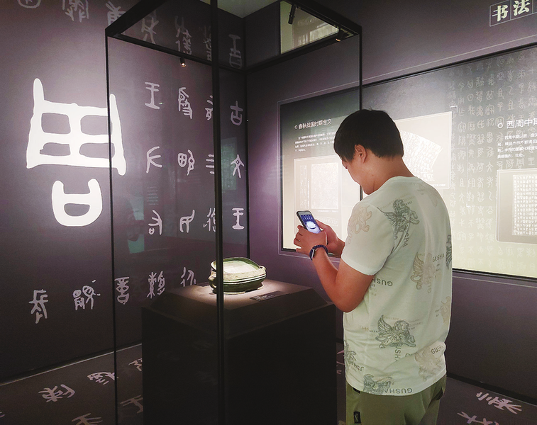 游客在寶雞青銅器博物院觀賞伯夸父盨