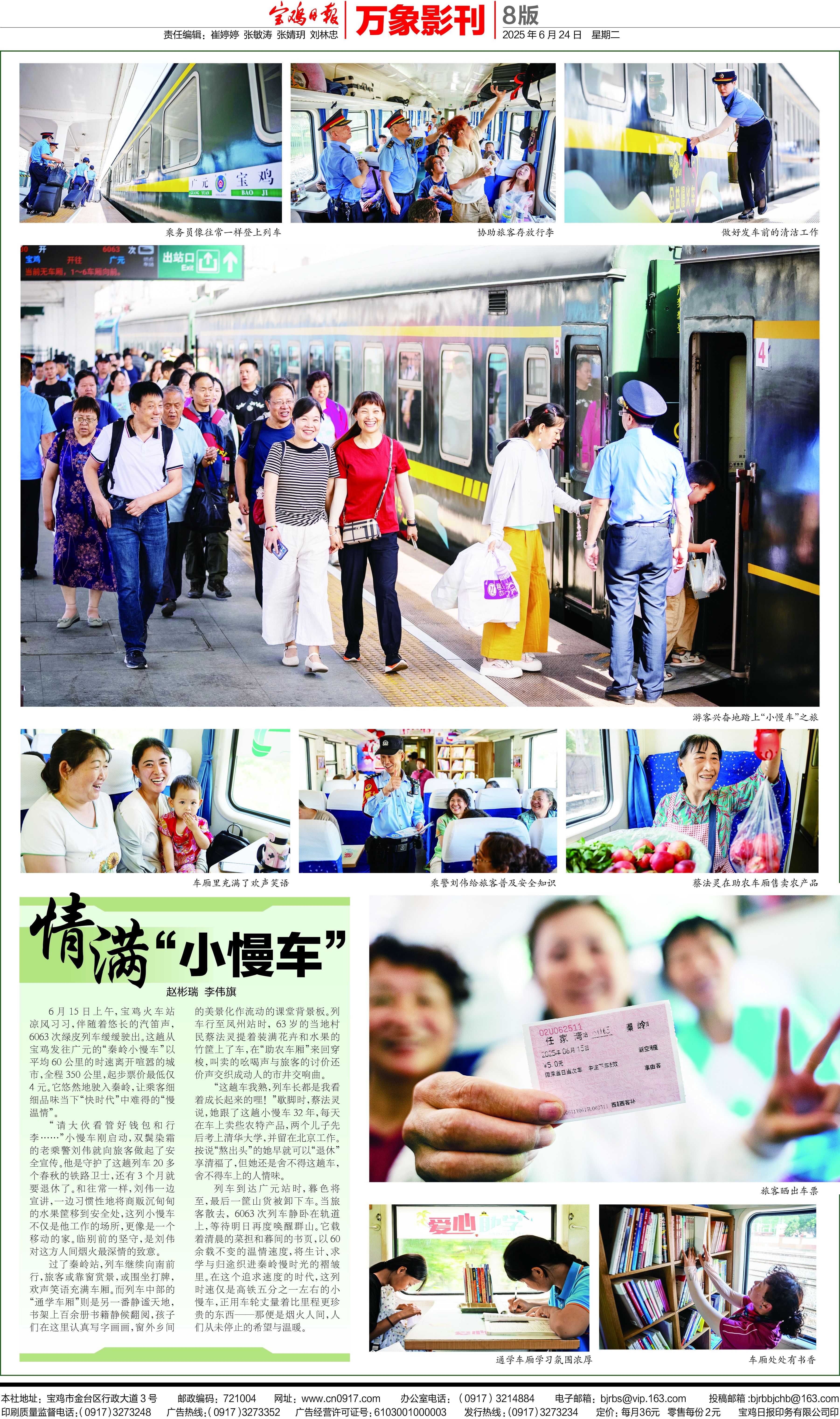 6月15日上午,寶雞火車站涼風(fēng)習(xí)習(xí),伴隨著悠長的汽笛聲,6063次綠皮列車緩緩駛出。這趟從寶雞發(fā)往廣元的“秦嶺小慢車”以平均60公里的時速離開喧囂的城市,全程350公里,起步票價最低僅4元。它悠然地駛?cè)肭貛X,讓乘客細(xì)細(xì)品味當(dāng)下“快時代”中難得的“慢溫情”。