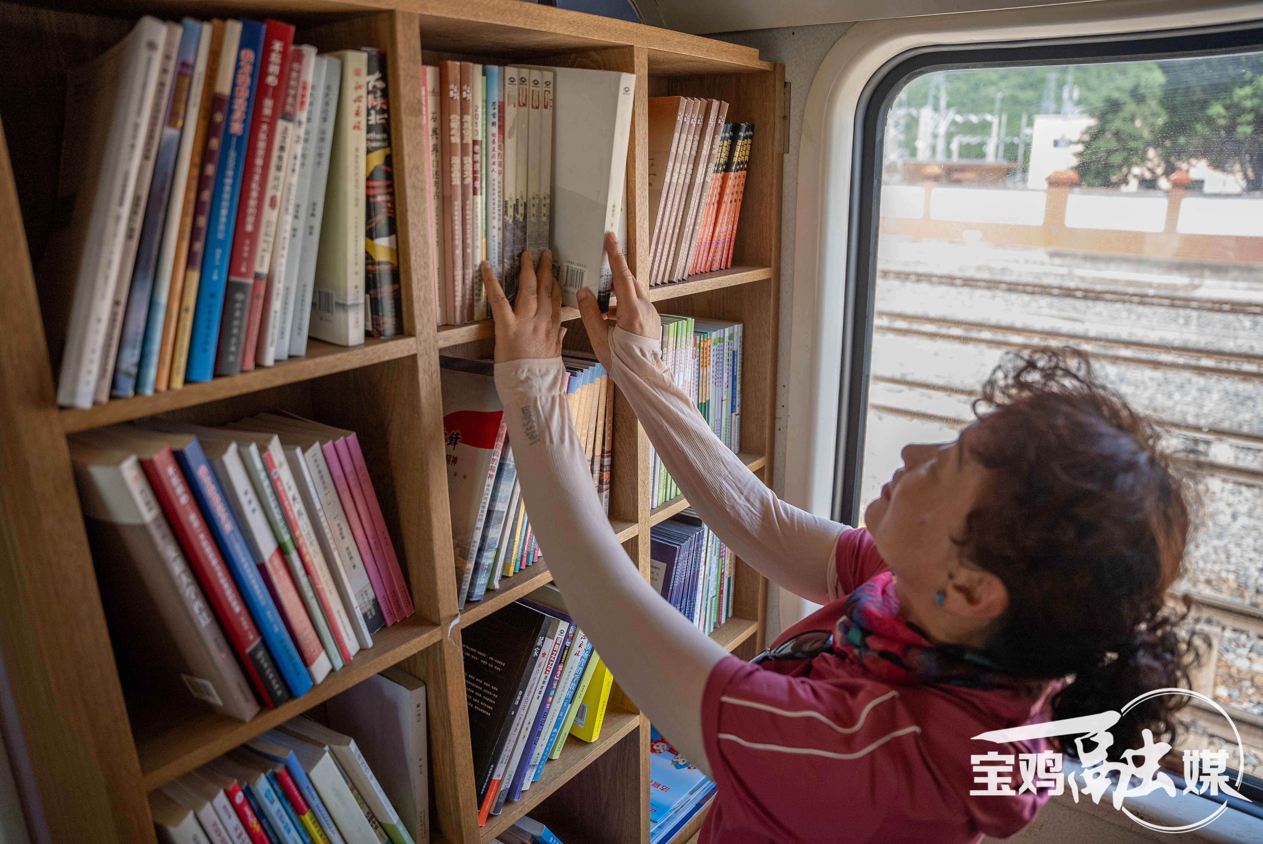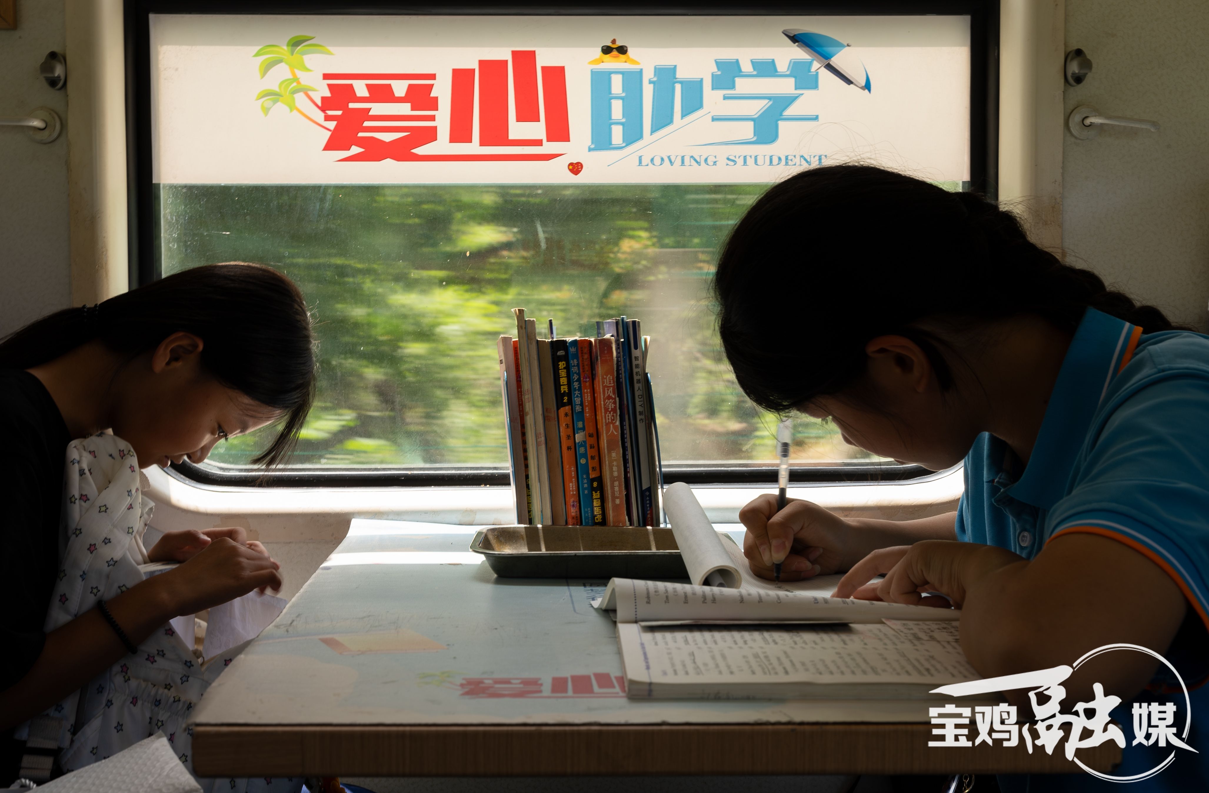 過了秦嶺站,列車?yán)^續(xù)向南前行,旅客或靠窗賞景,或圍坐打牌,歡聲笑語充滿車廂。而列車中部的“通學(xué)車廂”則是另一番靜謐天地,書架上百余冊書籍靜候翻閱,孩子們在這里認(rèn)真寫字畫畫,窗外鄉(xiāng)間的美景化作流動的課堂背景板。列車行至鳳州站時,63歲的當(dāng)?shù)卮迕癫谭`提著裝滿花卉和水果的竹筐上了車,在“助農(nóng)車廂”來回穿梭,叫賣的吆喝聲與旅客的討價還價聲交織成動人的市井交響曲。