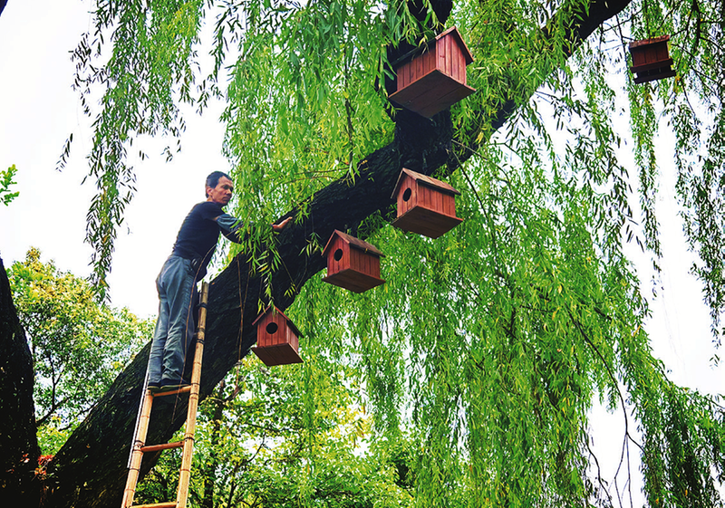 據(jù)了解,該園自2013年起在西草坪及東湖沿岸的榆樹、柳樹上設(shè)置生態(tài)鳥籠,并建立專業(yè)維護機制。工作人員定期檢查更換用于懸掛鳥籠的鐵絲,確保鳥兒的安全。目前,園區(qū)生態(tài)鳥籠數(shù)量已增至20個。寶雞炎帝園管理處工作人員介紹,這些鳥籠長35厘米、寬25厘米,經(jīng)過特殊防雨防腐處理,安全又舒適。