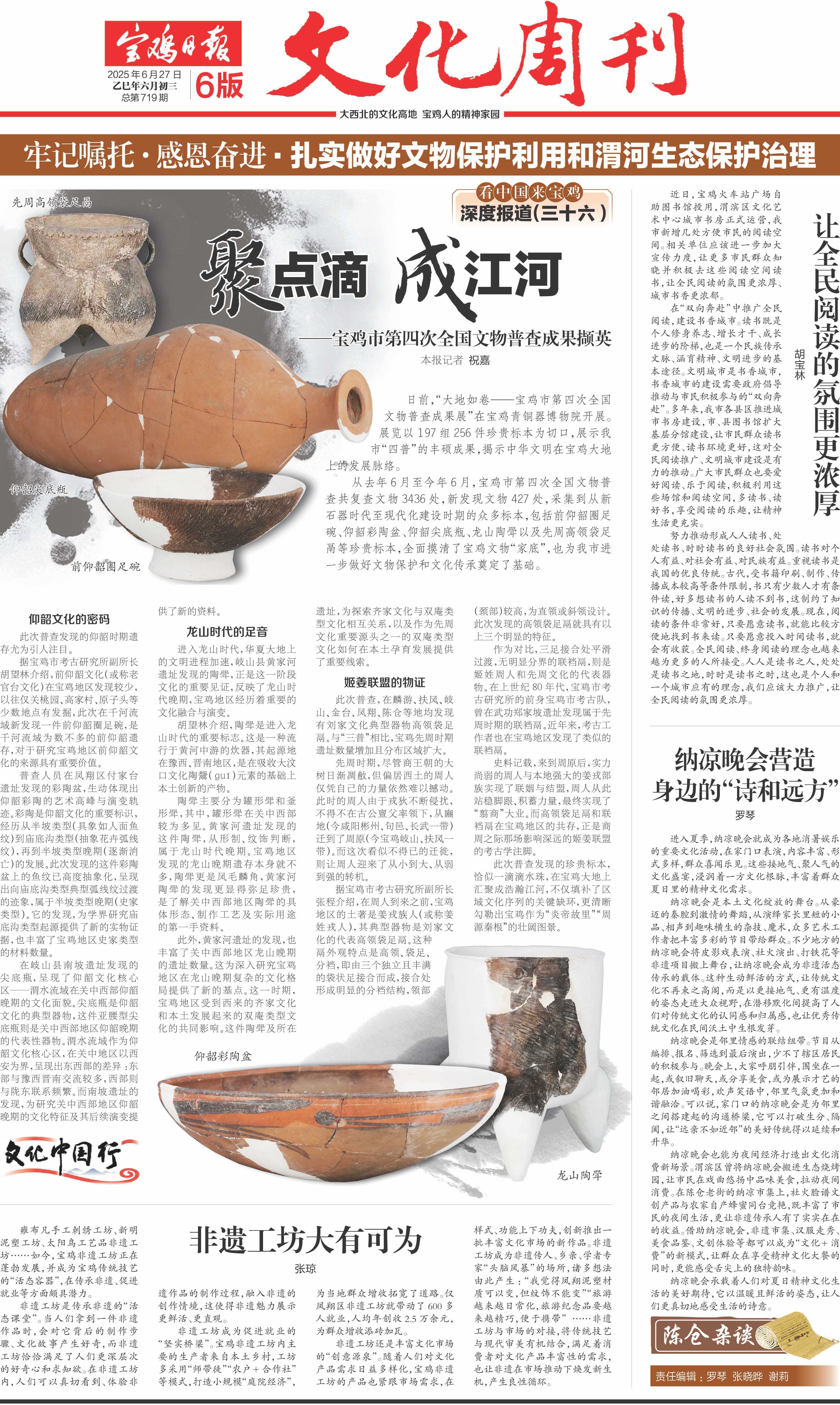 此次普查發現的珍貴標本,恰似一滴滴水珠,在寶雞大地上匯聚成浩瀚江河,不僅填補了區域文化序列的關鍵缺環,更清晰勾勒出寶雞作為“炎帝故里”“周源秦根”的壯闊圖景。(寶雞融媒 祝嘉)