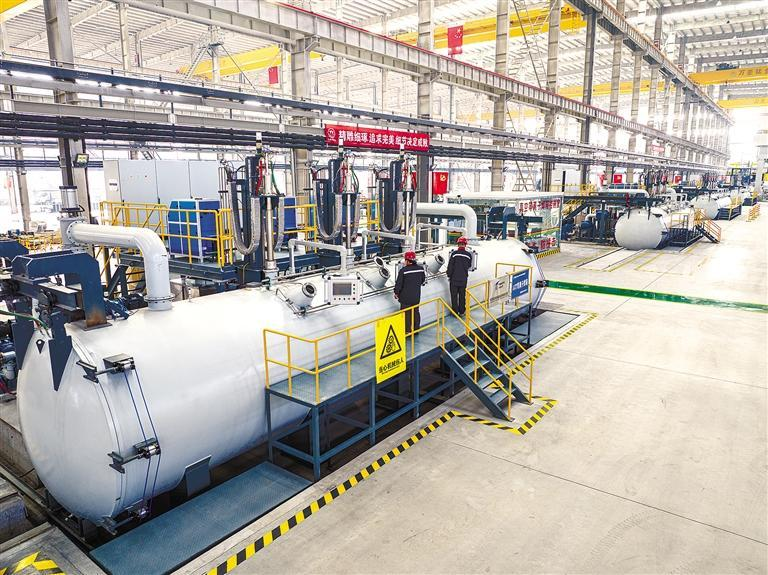 萬豪鈦金5G智能鈦熔煉產(chǎn)業(yè)園里,生產(chǎn)線有序運(yùn)轉(zhuǎn)(資料照片)。