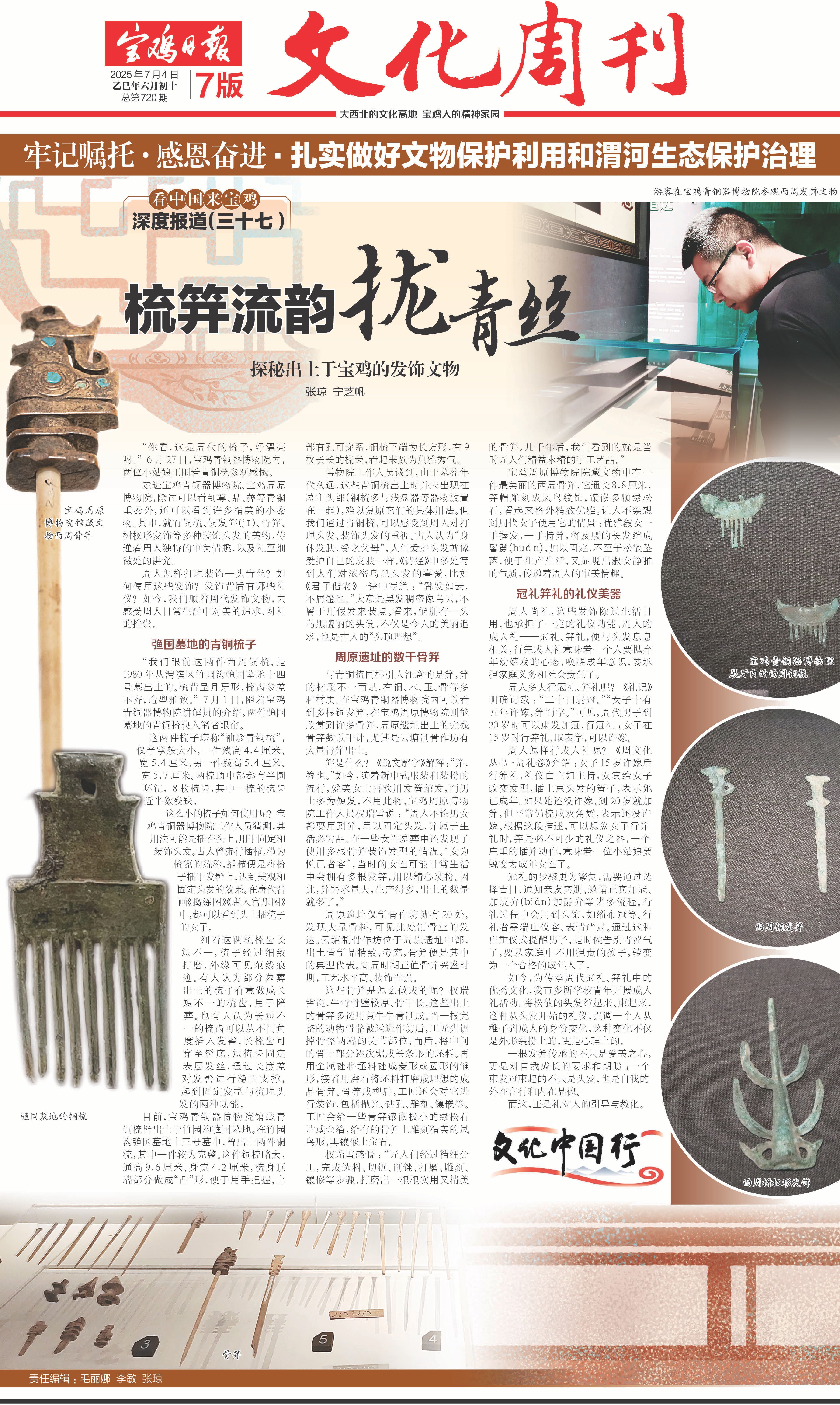 “你看,這是周代的梳子,好漂亮呀。”6月27日,寶雞青銅器博物院內,兩位小姑娘正圍著青銅梳參觀感慨。