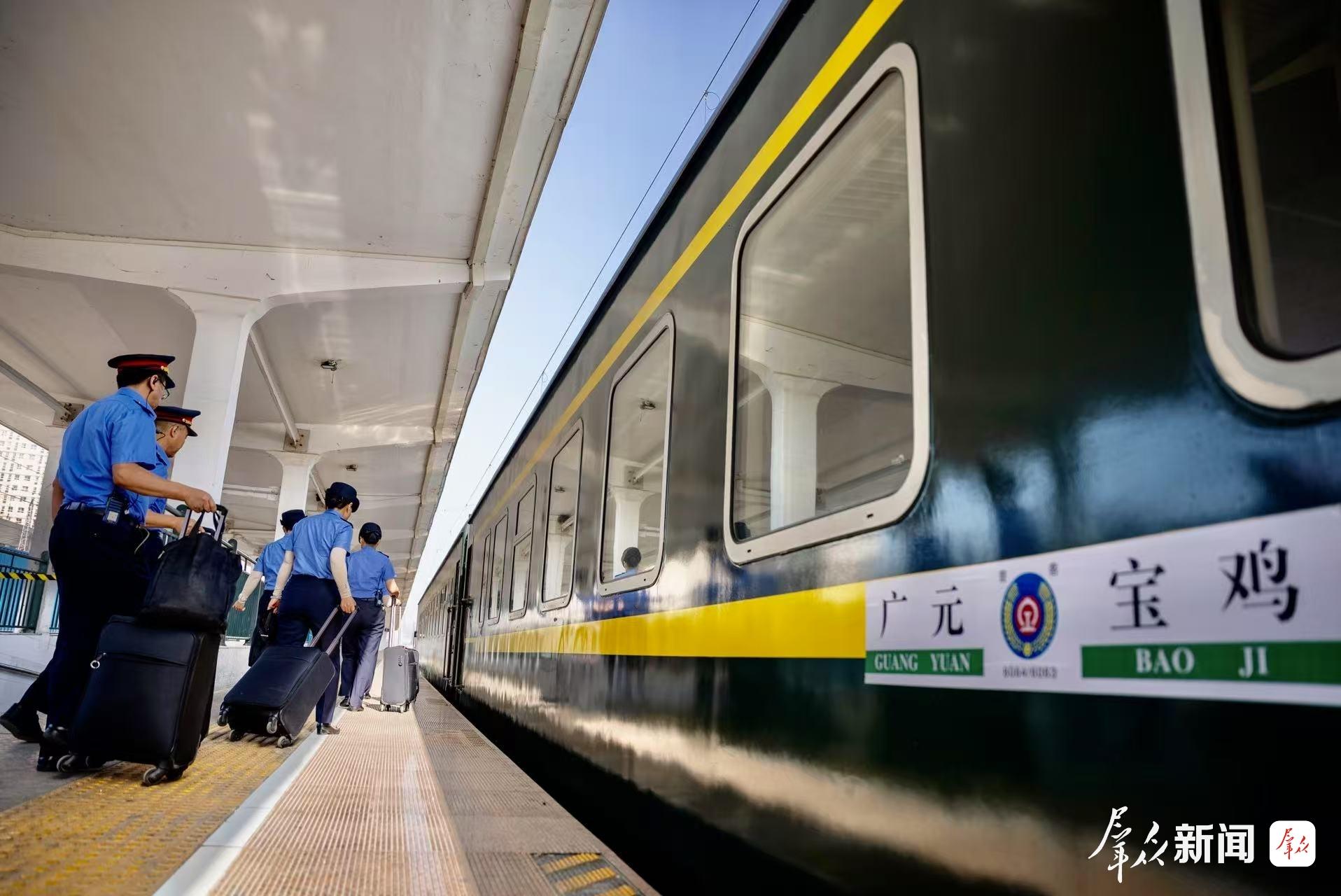 每日,伴隨著悠長(zhǎng)的汽笛聲,6063/4次綠皮列車緩緩從寶雞站、廣元站駛出,悠然地駛?cè)肭貛X,讓乘客細(xì)細(xì)品味當(dāng)下“快時(shí)代”中難得的“慢溫情”。近日,記者從寶雞站出發(fā),經(jīng)過9小時(shí)30分的旅程,到達(dá)廣元站,沉浸式感受這趟綠皮火車上的溫情。