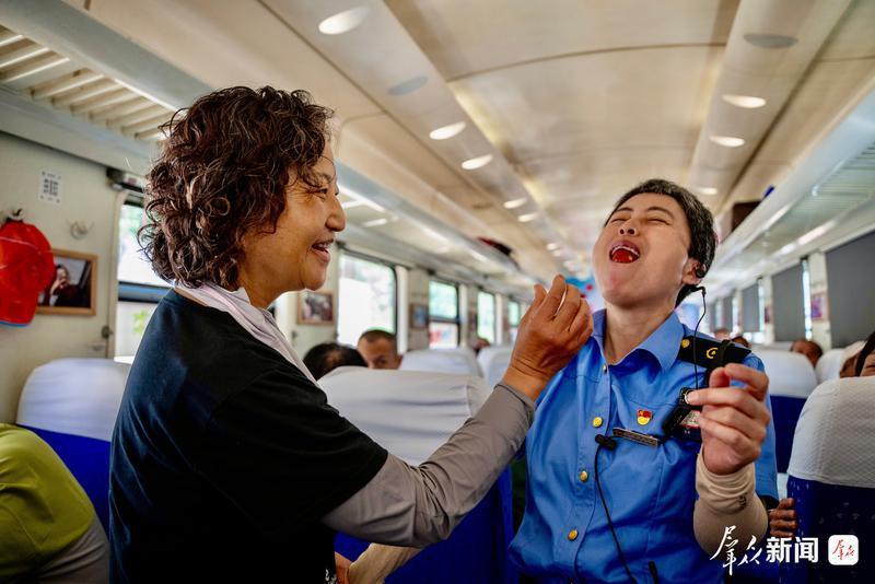 向?qū)毩质?063/4次列車的列車長(zhǎng),在這趟列車上干了近20年,今年10月,他就要退休了。他有一個(gè)微信群,群里有100多名沿線旅客。這個(gè)群就像一個(gè)小小的“服務(wù)站”,老鄉(xiāng)們有任何問題都在群里找他。