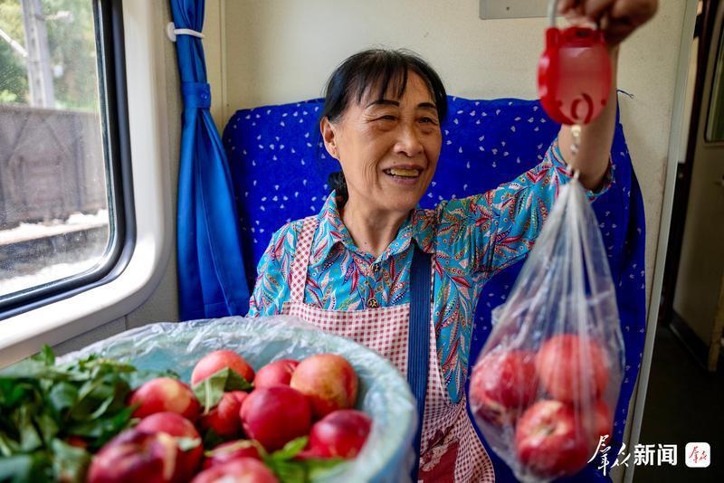 沿途群眾在“秦嶺小慢車”車廂內(nèi)售賣農(nóng)產(chǎn)品。