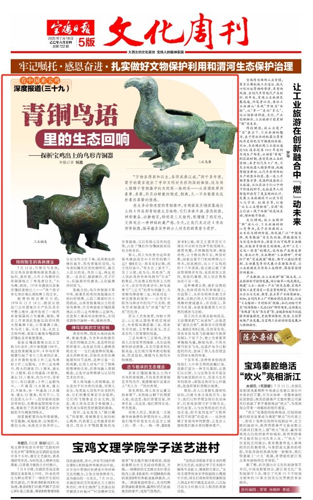 曾經(jīng),古人以青銅禮器寄托信仰,以政令條文規(guī)范行為;如今,我們以科學(xué)理念指引生態(tài)保護(hù),以系統(tǒng)治理守護(hù)萬(wàn)物生長(zhǎng)。時(shí)代在變,人與自然相處的方式也在變,但不變的是對(duì)“萬(wàn)物并育而不相害”的追求——這份熔鑄于青銅鳥(niǎo)中的智慧,正是古人留給我們最寶貴的精神遺產(chǎn)。(寶雞融媒記者 祝嘉)