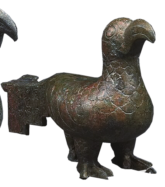那么,周人為何要為這些青銅鳥(niǎo)增添現(xiàn)實(shí)中不存在的第三足?據(jù)《史記·周本紀(jì)》記載,武王伐紂途中,“有火自上復(fù)于下,至于王屋,流為烏,其色赤”,周人因此將赤色神鳥(niǎo)視為“天命”的象征,代表著王權(quán)得到上天的認(rèn)可;在后世的神話中,神鳥(niǎo)逐漸與“三足烏”的符號(hào)相融合。為青銅鳥(niǎo)增添第三足,則是對(duì)這一神話意象的復(fù)刻——讓現(xiàn)實(shí)中的鳥(niǎo)與神話中的鳥(niǎo)產(chǎn)生關(guān)聯(lián),使鳥(niǎo)形青銅器成為“祥瑞”和“吉兆”的化身。