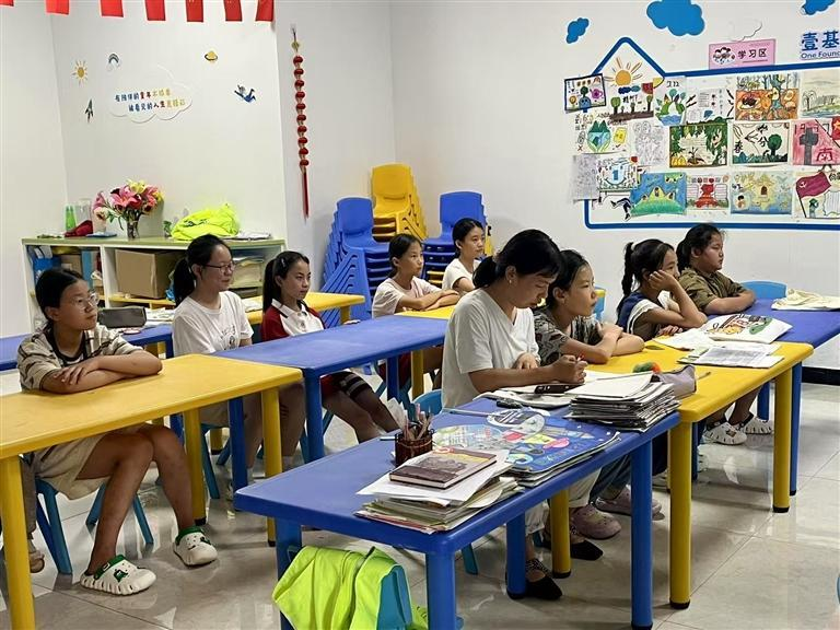 七月二十二日,寶雞市金臺區(qū)十里鋪街道西建社區(qū)“七彩課堂”驛站,小朋友在上課。