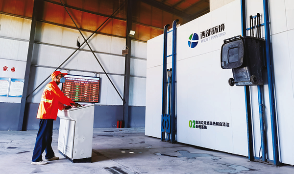 在草碧生活垃圾熱解站,工作人員輕點按鈕,就可實現一桶桶生活垃圾的自動上料、傾倒、焚燒,一天可焚燒5噸垃圾,燒完只剩240多公斤灰燼,垃圾減量達到95.2%。