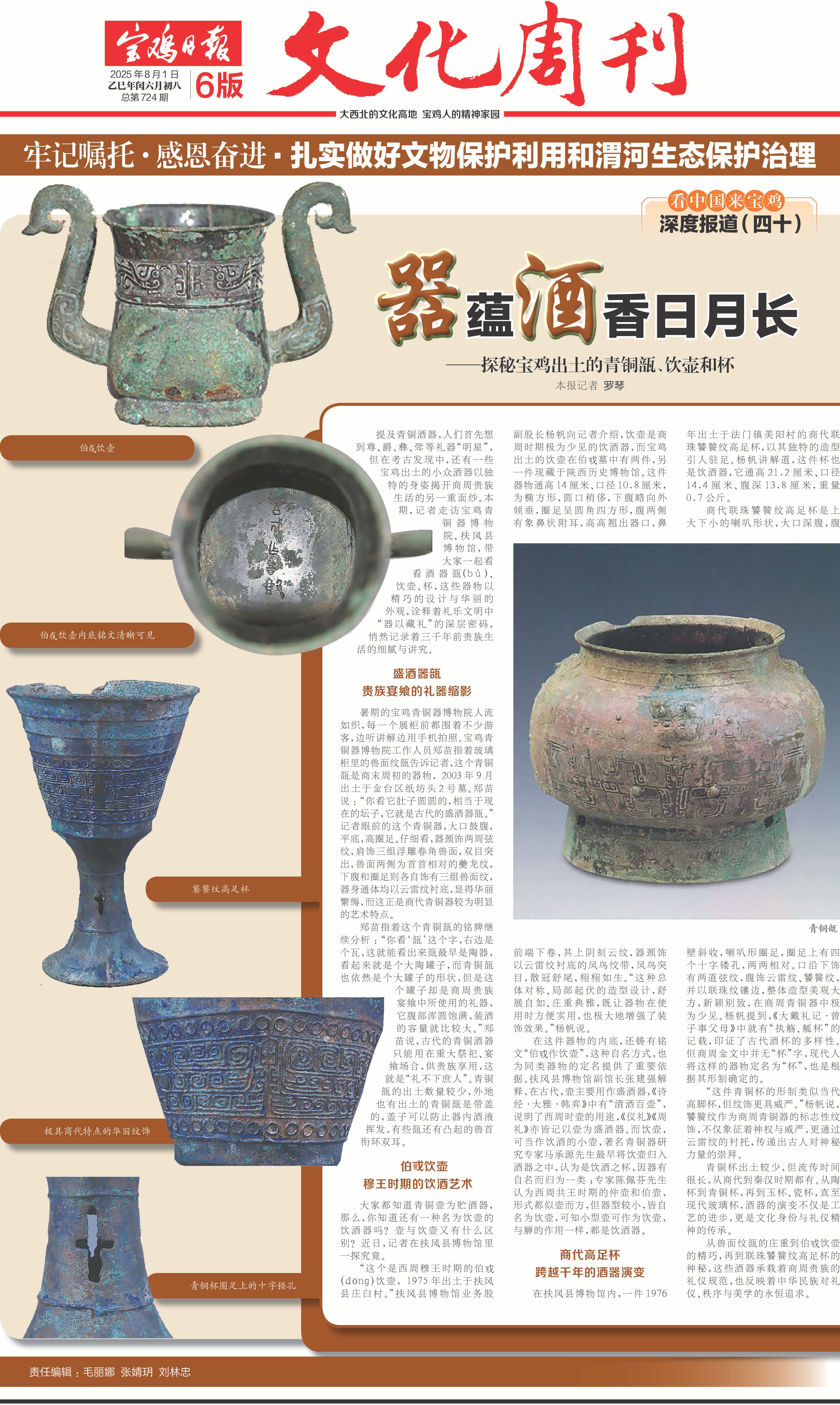 從獸面紋瓿的莊重到伯(戈冬dōng)飲壺的精巧,再到聯珠饕餮紋高足杯的神秘,這些酒器承載著商周貴族的禮儀規范,也反映著中華民族對禮儀、秩序與美學的永恒追求。(寶雞融媒 羅琴)