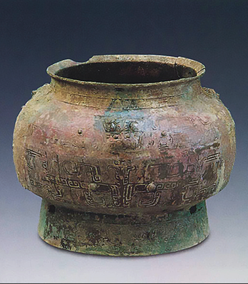 暑期的寶雞青銅器博物院人流如織,每一個展柜前都圍著不少游客,邊聽講解邊用手機拍照。寶雞青銅器博物院工作人員鄭苗指著玻璃柜里的獸面紋瓿告訴記者,這個青銅瓿是商末周初的器物,2003年9月出土于金臺區紙坊頭2號墓。鄭苗說:“你看它肚子圓圓的,相當于現在的壇子,它就是古代的盛酒器瓿?!庇浾哐矍暗倪@個青銅器,大口鼓腹,平底,高圈足。仔細看,器頸飾兩周弦紋,肩飾三組浮雕卷角獸面,雙目突出,獸面兩側為首首相對的夔龍紋,下腹和圈足則各自飾有三組獸面紋,器身通體均以云雷紋襯底,顯得華麗繁縟,而這正是商代青銅器較為明顯的藝術特點。