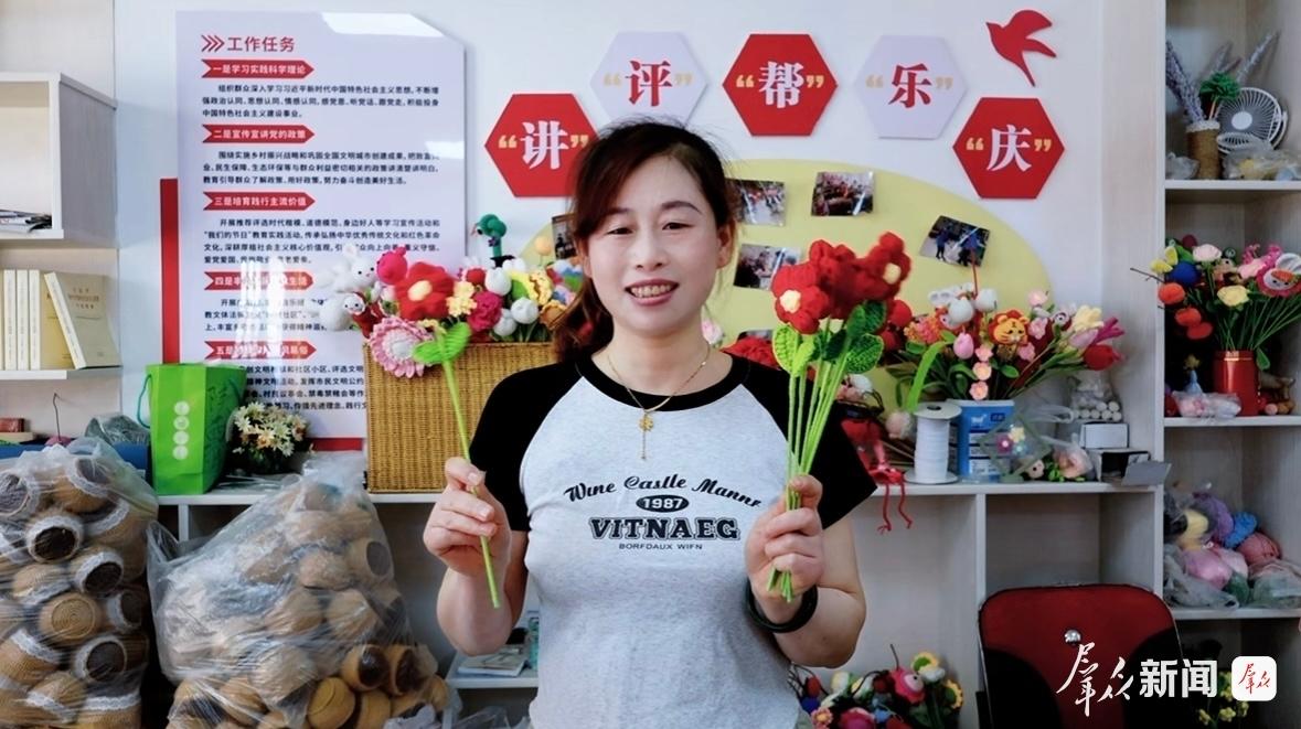 “這款新花型我先學,學會了再教大家。”7月28日,賈春艷一邊熟練地分裝毛線,一邊笑著說,“鉤來鉤去,不只是鉤出花樣,也把我從灰暗的角落里‘鉤了出來’。”對她來說,這份工作不僅帶來了收入,還讓她重拾了生活的信心。