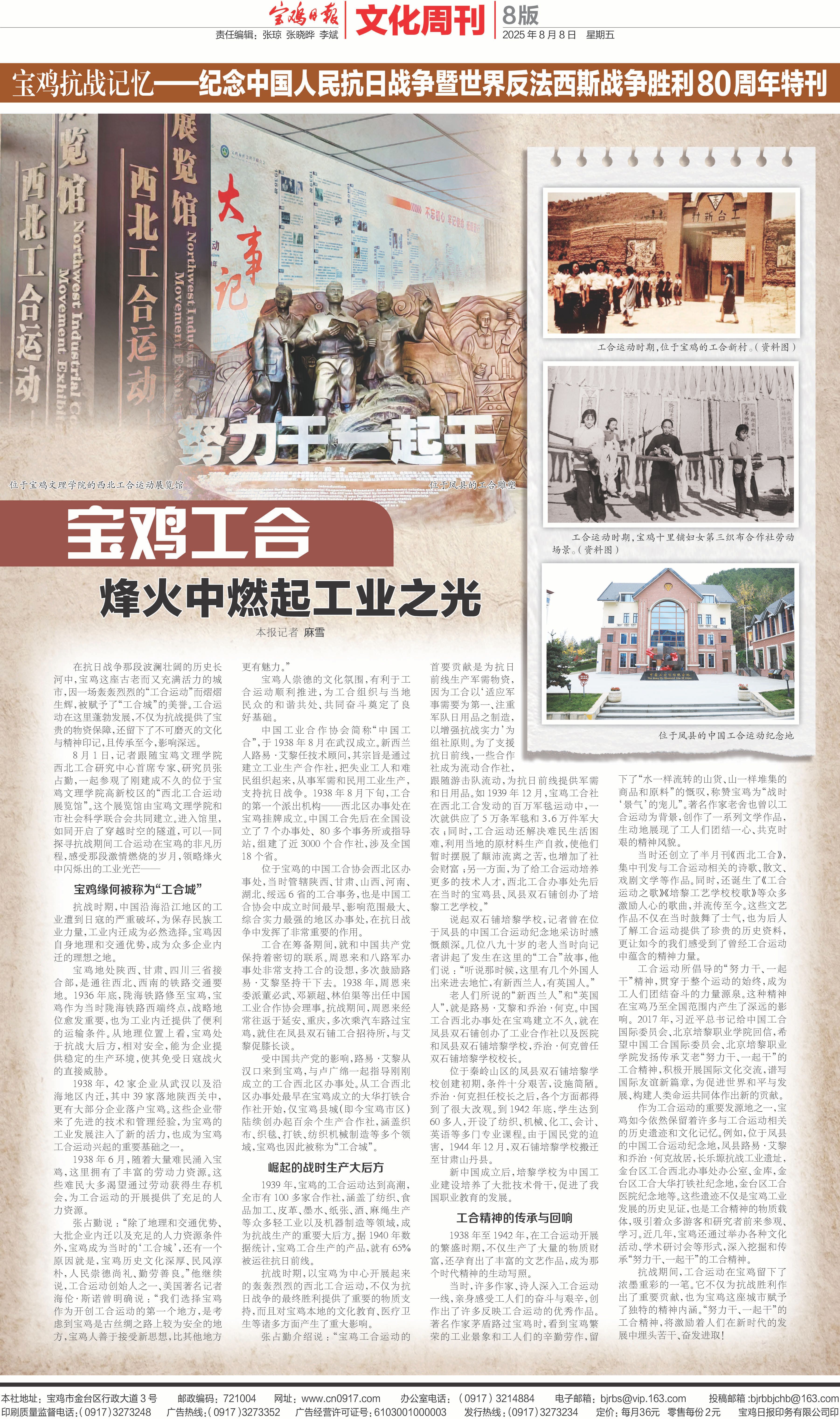 抗戰期間,工合運動在寶雞留下了濃墨重彩的一筆。它不僅為抗戰勝利作出了重要貢獻,也為寶雞這座城市賦予了獨特的精神內涵。“努力干、一起干”的工合精神,將激勵著人們在新時代的發展中埋頭苦干、奮發進??!