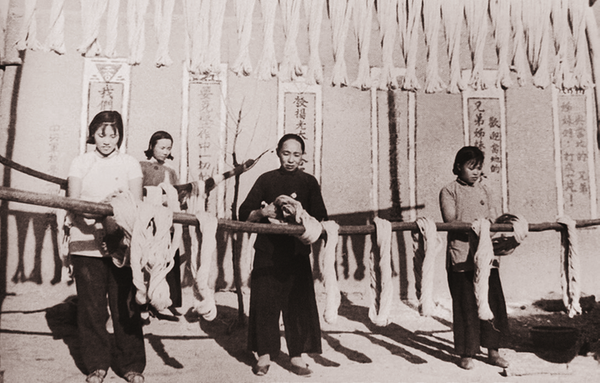 工合運動時期,寶雞十里鋪婦女第三織布合作社勞動場景。(資料圖)