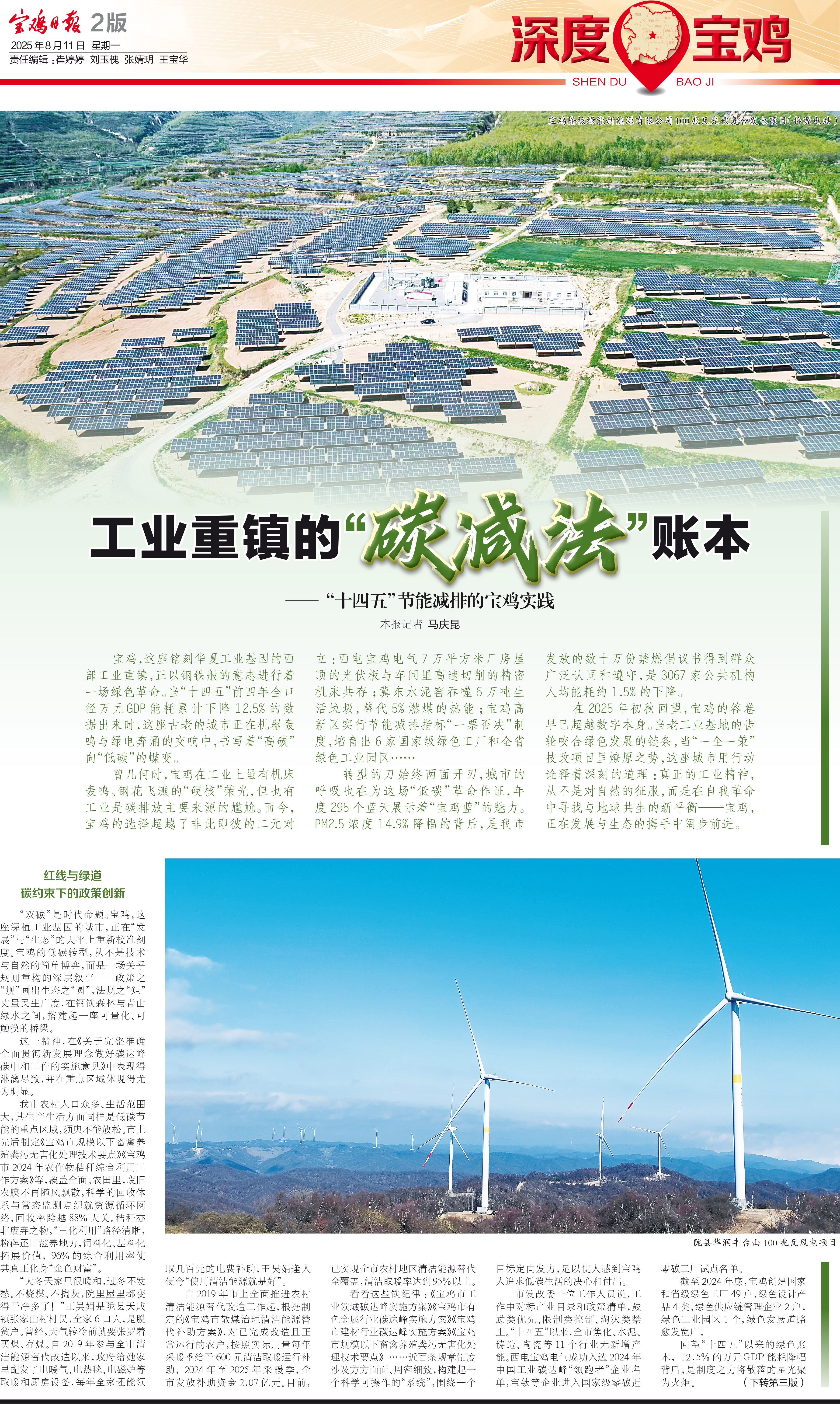 寶雞,這座銘刻華夏工業(yè)基因的西部工業(yè)重鎮(zhèn),正以鋼鐵般的意志進(jìn)行著一場(chǎng)綠色革命。當(dāng)“十四五”前四年全口徑萬(wàn)元GDP能耗累計(jì)下降12.5%的數(shù)據(jù)出來(lái)時(shí),這座古老的城市正在機(jī)器轟鳴與綠電奔涌的交響中,書寫著“高碳”向“低碳”的蝶變。