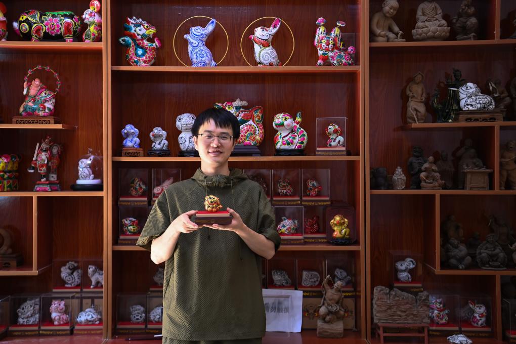 ??創新,成為胡錦偉激活老手藝的關鍵。他虛心向村里的老師傅請教,也常與其他青年同行交流探討。他嘗試將卡通元素融入傳統造型,萌寵“Q版”系列泥塑一經推出便成為市場爆款,年銷量超10萬件。
