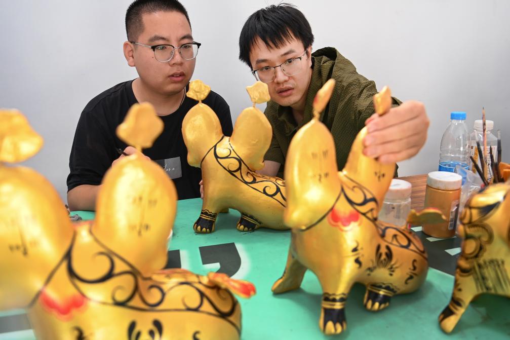 ??創業伊始,胡錦偉通過走訪發現,村里家庭作坊生產的泥塑種類少、品質不一,缺乏市場競爭力。不少人對鳳翔泥塑“老土”“過時”的印象,也制約著產業發展?!澳嗨懿粌H是傳統手藝,還蘊藏著更大的文化價值和市場潛力?!焙\偉說。他決心運用所學的設計知識,在父輩和鄉親們打下的基礎上,推動泥塑與現代生活融合。