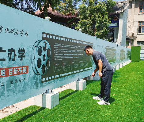 西城高中內的“河南大學抗戰辦學紀念展”主題文化墻
