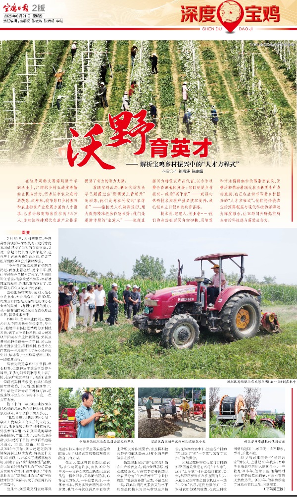 在這片周秦文明綿延數(shù)千年的沃土上,廣闊的鄉(xiāng)村正迸發(fā)著新的生機(jī)與活力。記者從市農(nóng)業(yè)農(nóng)村局獲悉,近年來(lái),我市緊盯鄉(xiāng)村振興和農(nóng)業(yè)特色產(chǎn)業(yè)發(fā)展方面的人才需求,已累計(jì)培育高素質(zhì)農(nóng)民2.6萬(wàn)人,為加快構(gòu)建現(xiàn)代農(nóng)業(yè)產(chǎn)業(yè)體系提供了有力的智力支撐。 放眼寶雞沃野,新時(shí)代的農(nóng)民早已顛覆過(guò)去“面朝黃土背朝天”的形象。他們是駕馭科技的“農(nóng)學(xué)家”——操控?zé)o人機(jī)翱翔巡田,用大數(shù)據(jù)精準(zhǔn)把脈作物長(zhǎng)勢(shì);他們是遨游市場(chǎng)的“生意人”——架起直播間為特色農(nóng)產(chǎn)品代言,以合作社整合資源抱團(tuán)發(fā)展;他們更是鄉(xiāng)村振興一線的“實(shí)干家”——或潛心鉆研技術(shù)實(shí)現(xiàn)產(chǎn)量品質(zhì)雙提升,或扎根鄉(xiāng)土引領(lǐng)鄉(xiāng)親共奔富路。 技術(shù)員、經(jīng)理人、創(chuàng)業(yè)者……他們的身份在田間自如切換,用智慧和汗水精耕細(xì)作的高素質(zhì)農(nóng)民,正帶動(dòng)和推動(dòng)著現(xiàn)代農(nóng)業(yè)新質(zhì)生產(chǎn)力的發(fā)展,也正在生動(dòng)書寫著鄉(xiāng)村振興的“人才方程式”。他們將傳統(tǒng)農(nóng)業(yè)的深厚根基與現(xiàn)代科技的澎湃動(dòng)力深度融合,讓田野間升騰起前所未有的科技感與蓬勃生命力。 蝶變 7月30日,天剛蒙蒙亮。千陽(yáng)縣水溝鎮(zhèn)新中村農(nóng)民劉云建的家庭農(nóng)場(chǎng)就迎來(lái)了當(dāng)天的首位客商,縣城一家超市的負(fù)責(zé)人早早趕來(lái),趕在早上客流高峰到來(lái)之前,運(yùn)走了剛采摘的200公斤新鮮酥梨。 千陽(yáng)縣崔家頭鎮(zhèn)蘋果種植基地 “今年我們家庭農(nóng)場(chǎng)有機(jī)肥用得足,再加上管理好,是個(gè)豐年。預(yù)計(jì)早熟梨產(chǎn)量超4萬(wàn)公斤。”劉云建對(duì)記者說(shuō),他家的梨不愁賣,早就被附近的超市、外地的客商預(yù)訂了,最近每天都有來(lái)拉果子的客商。 堅(jiān)持把梨樹(shù)種好,是劉云建心中的執(zhí)念,為此他奮斗了近30年,將勤勞和智慧毫無(wú)保留地用在心心念念的梨樹(shù)上,并通過(guò)自己的努力,從一名普通的農(nóng)民成長(zhǎng)為高級(jí)職業(yè)農(nóng)民、省級(jí)技術(shù)能手。 1989年,高中畢業(yè)的劉云建報(bào)名進(jìn)入千陽(yáng)縣果樹(shù)學(xué)校學(xué)習(xí)。畢業(yè)后,他被千陽(yáng)縣園藝站聘為果樹(shù)技術(shù)員。做了五年的技術(shù)員,劉云建發(fā)現(xiàn)千陽(yáng)果樹(shù)產(chǎn)業(yè)比較落后,尤其是梨樹(shù)的種植還是一片空白。劉云建決定回家創(chuàng)業(yè),種植梨樹(shù)。他首先在自家的一畝地里種上了精心選擇的皇冠、早酥蜜、七月酥等梨樹(shù)品種,一路摸索前行。 盡管劉云建常吃住在果園,悉心照料,但栽種三年的梨樹(shù)始終不結(jié)果。無(wú)助的劉云建聯(lián)系縣上農(nóng)廣校,在農(nóng)廣校的牽線下,聯(lián)系到山東一位研究梨樹(shù)的教授,他連忙給教授寫信求助。十天后,教授回信了,不但給他詳細(xì)介紹了種植方法,還鼓勵(lì)他不要灰心,堅(jiān)持干下去,一定會(huì)有收獲。 千陽(yáng)縣高級(jí)職業(yè)農(nóng)民劉云建采摘蘋果 接下來(lái)的一年,劉云建按照這位教授的方法,精心管護(hù)果樹(shù),終獲累累碩果,當(dāng)年就掙了兩萬(wàn)多元。 “此次收獲,讓我深切體會(huì)到了學(xué)無(wú)止境的真正含義。”劉云建說(shuō)。自此,他更加努力地學(xué)習(xí)種植技術(shù)。新技術(shù)的應(yīng)用,也讓劉云建的梨樹(shù)越長(zhǎng)越好,產(chǎn)量上去了,口味也更香甜。劉云建有了自信,種植面積也越來(lái)越大。10畝、20畝、30畝……從2012年開(kāi)始,劉云建通過(guò)陸陸續(xù)續(xù)流轉(zhuǎn)土地的方式,將果園擴(kuò)大到50畝以上,并成立了燕伋家庭農(nóng)場(chǎng),創(chuàng)建了自己的“燕伋酥梨”品牌。劉云建通過(guò)參加市縣農(nóng)廣校的高素質(zhì)農(nóng)民專業(yè)培訓(xùn),逐漸拿到了“中級(jí)職業(yè)農(nóng)民”“高級(jí)職業(yè)農(nóng)民”和“省級(jí)技術(shù)能手”的證書,成了遠(yuǎn)近聞名的種植高手。 這幾年,劉云建又研究起蘋果黑星病和天牛與介殼蟲(chóng)等病蟲(chóng)害的防治,為千陽(yáng)果農(nóng)實(shí)現(xiàn)穩(wěn)定增收貢獻(xiàn)自己的力量。 像劉云建這樣的新型職業(yè)農(nóng)民,在寶雞還有許多。自從2012年中央一號(hào)文件首次提出新型職業(yè)農(nóng)民這一概念以來(lái),無(wú)數(shù)勤奮好學(xué)、心懷遠(yuǎn)大的農(nóng)人,一手拿著農(nóng)具、一手拿著書本,躬身實(shí)踐著現(xiàn)代農(nóng)業(yè)的夢(mèng)想。他們不再僅僅滿足于面朝黃土背朝天的傳統(tǒng)勞作,而是將科技的種子播撒進(jìn)壟畝,讓知識(shí)的犁鏵深耕在沃野。 新型職業(yè)農(nóng)民“新”在何處?新在生產(chǎn)經(jīng)營(yíng)方式,新在管理思想,新在戰(zhàn)略眼光。有研究學(xué)者將新型職業(yè)農(nóng)民分為“生產(chǎn)經(jīng)營(yíng)型”“專業(yè)技能型”“社會(huì)服務(wù)型”三類,不論是哪一類,都必須擁有高素質(zhì)文化水平和先進(jìn)的技術(shù)知識(shí)與勞動(dòng)生產(