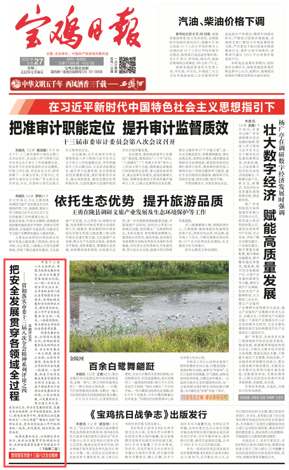 市委十三屆八次全會(huì)提出,要聚力統(tǒng)籌發(fā)展和安全,把安全發(fā)展貫穿各領(lǐng)域全過(guò)程,以一域一業(yè)安全支撐全市長(zhǎng)治久安。全市各級(jí)各部門要認(rèn)真貫徹落實(shí)全會(huì)要求,準(zhǔn)確把握發(fā)展和安全的辯證關(guān)系,強(qiáng)化責(zé)任擔(dān)當(dāng),在工作中自覺把發(fā)展和安全統(tǒng)一起來(lái),一起謀劃狠抓,努力推動(dòng)全市經(jīng)濟(jì)社會(huì)高質(zhì)量發(fā)展。