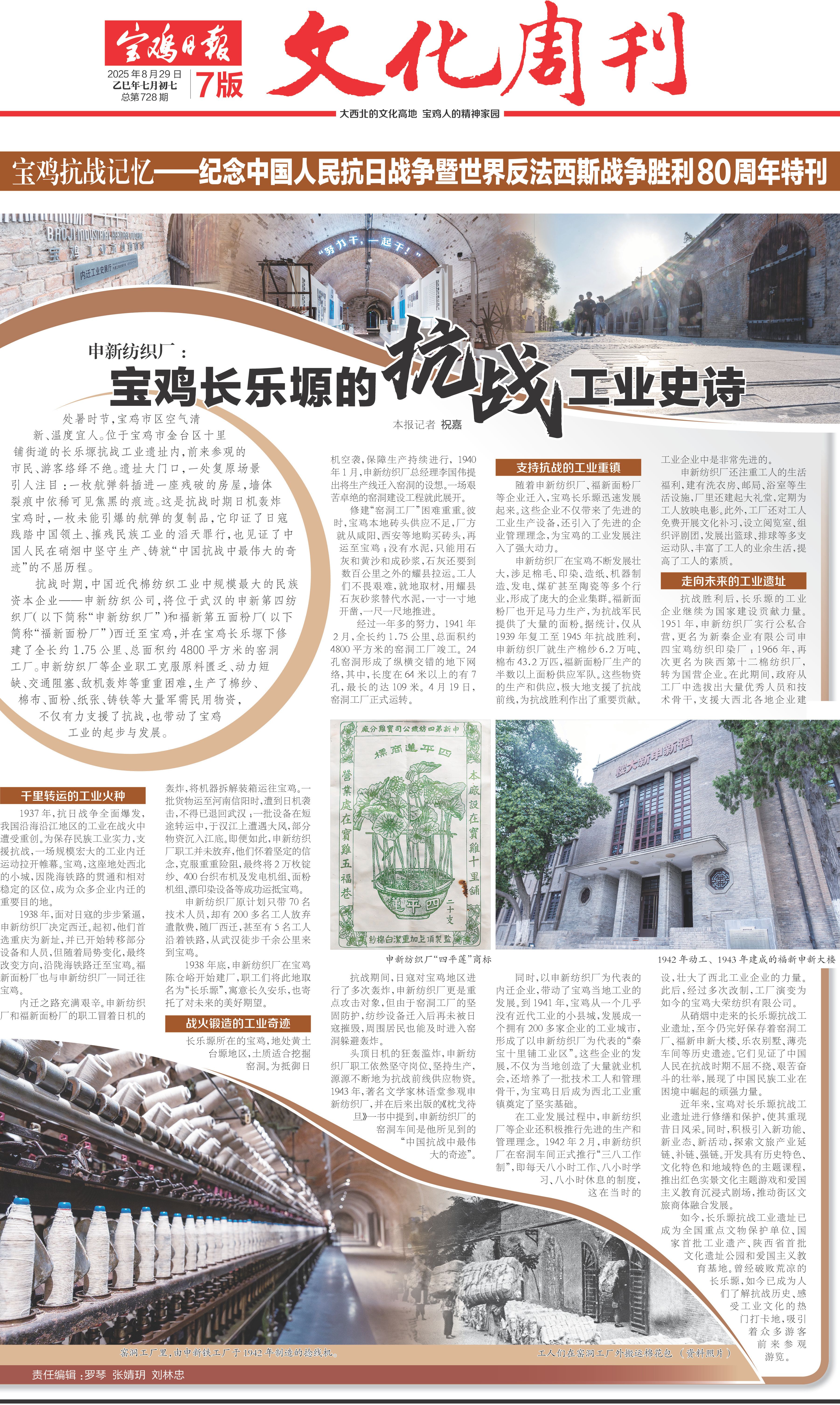 同時(shí),以申新紡織廠為代表的內(nèi)遷企業(yè),帶動(dòng)了寶雞當(dāng)?shù)毓I(yè)的發(fā)展。到1941年,寶雞從一個(gè)幾乎沒(méi)有近代工業(yè)的小縣城,發(fā)展成一個(gè)擁有200多家企業(yè)的工業(yè)城市,形成了以申新紡織廠為代表的“秦寶十里鋪工業(yè)區(qū)”。這些企業(yè)的發(fā)展,不僅為當(dāng)?shù)貏?chuàng)造了大量就業(yè)機(jī)會(huì),還培養(yǎng)了一批技術(shù)工人和管理骨干,為寶雞日后成為西北工業(yè)重鎮(zhèn)奠定了堅(jiān)實(shí)基礎(chǔ)。